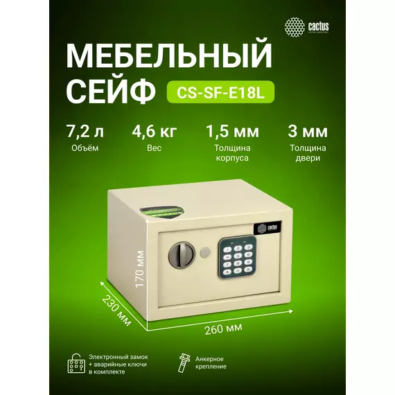 Сейф мебельный Cactus CS-SF-E18L взломостойкий 170x260x230мм электронный