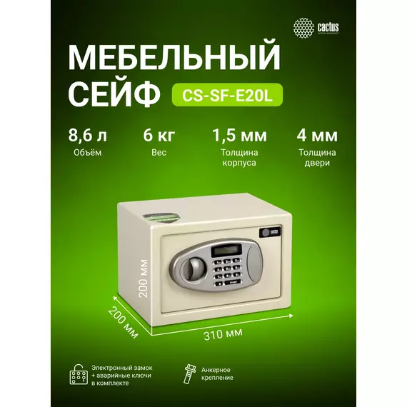 Сейф мебельный Cactus CS-SF-E20L взломостойкий 200x310x200мм электронный