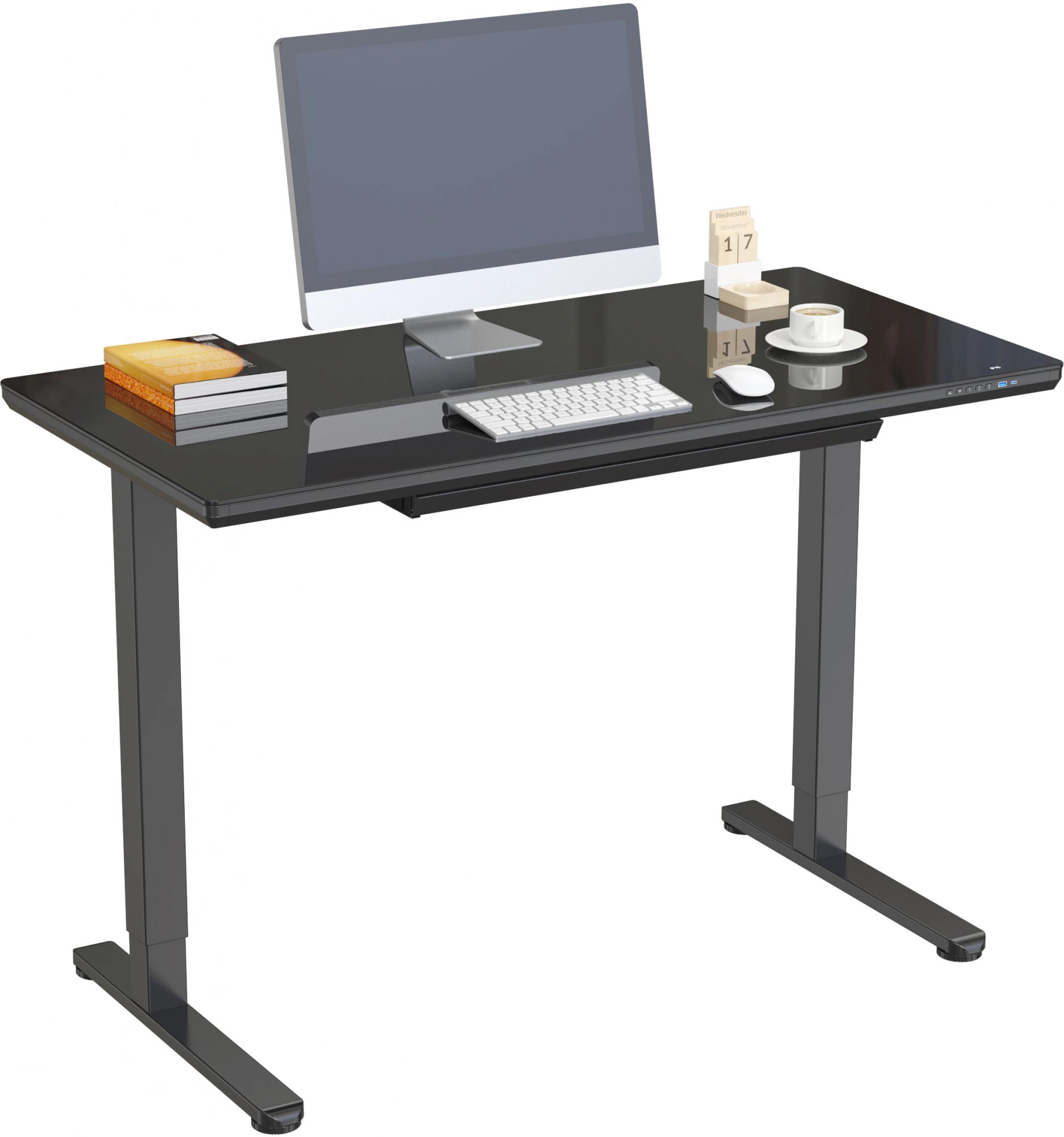 Стол для компьютера Cactus CS-EGD-BBK подъёмный столешница стекло черный каркас черный