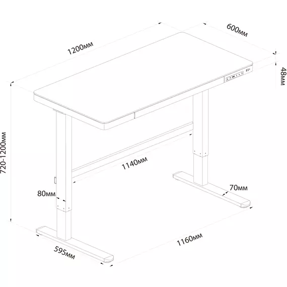 | Особенности | диапазон регулировки высоты: 72-120 см; скорость подъема/опускания: 25 мм/с; уровень шума при подъеме/опускании: <55dB; память положений: 2 |