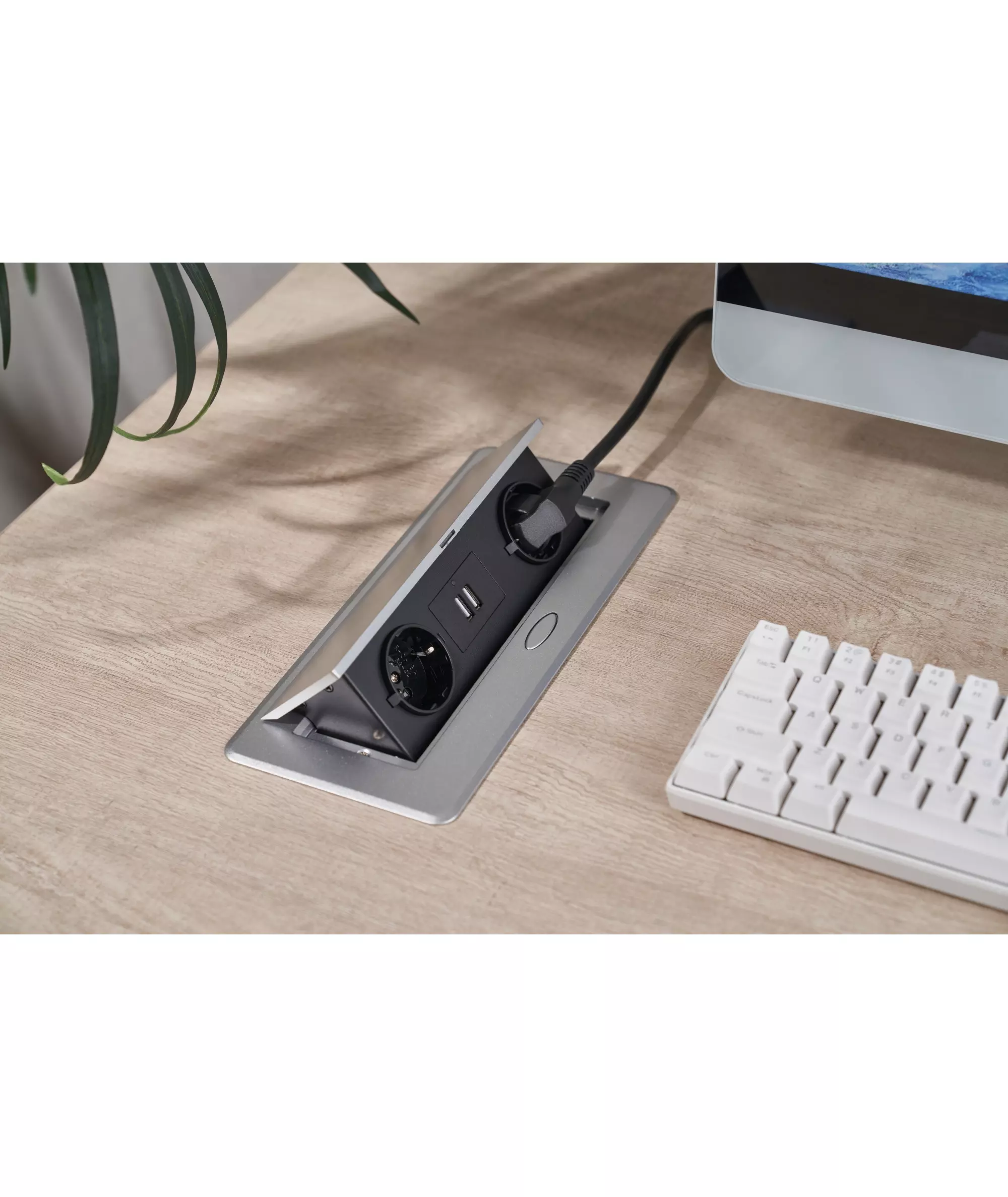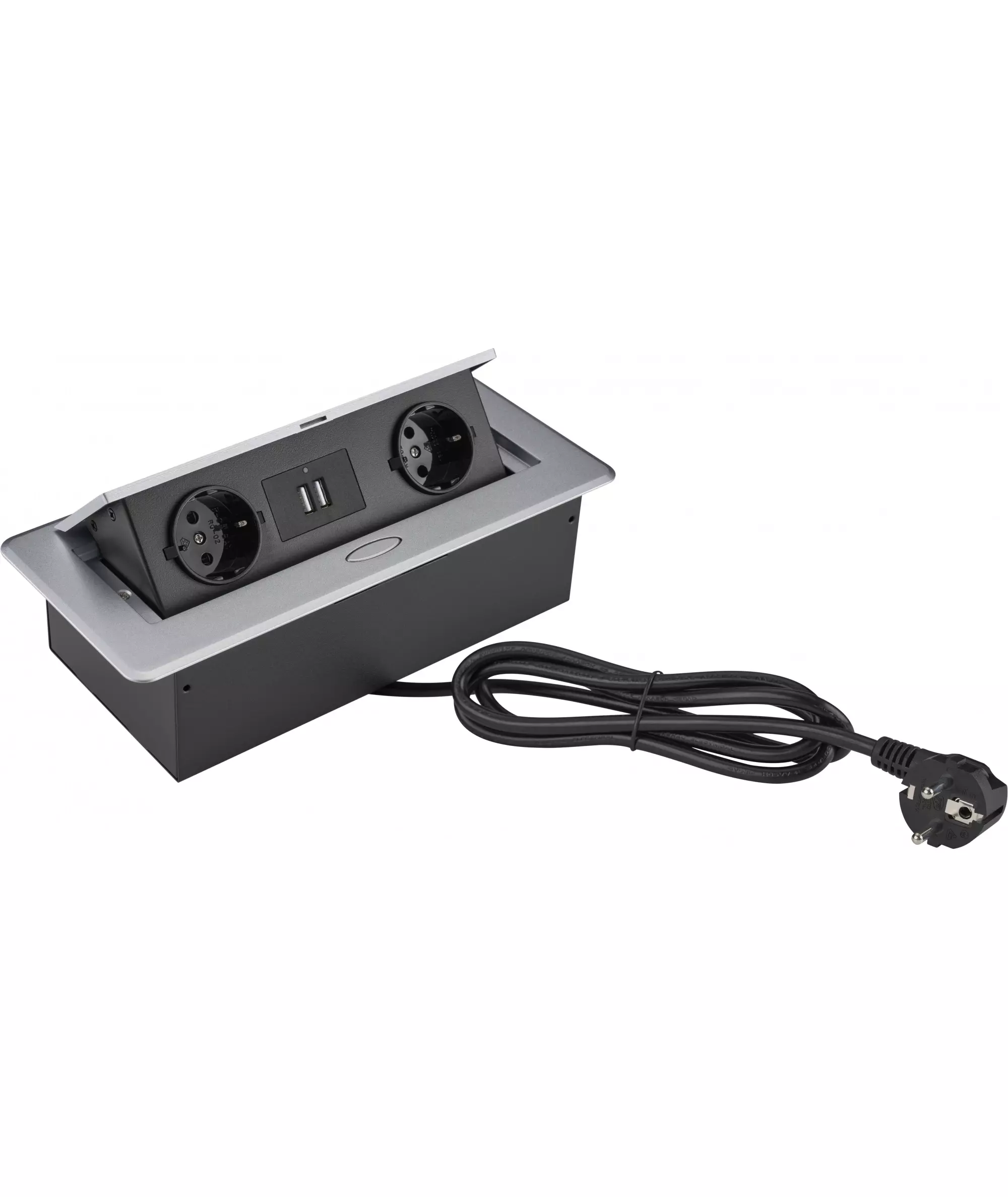 Розетка Cactus CS-SOCKET-EU/USBA-GY для столешницы 26.5x11.8x6.5см серый