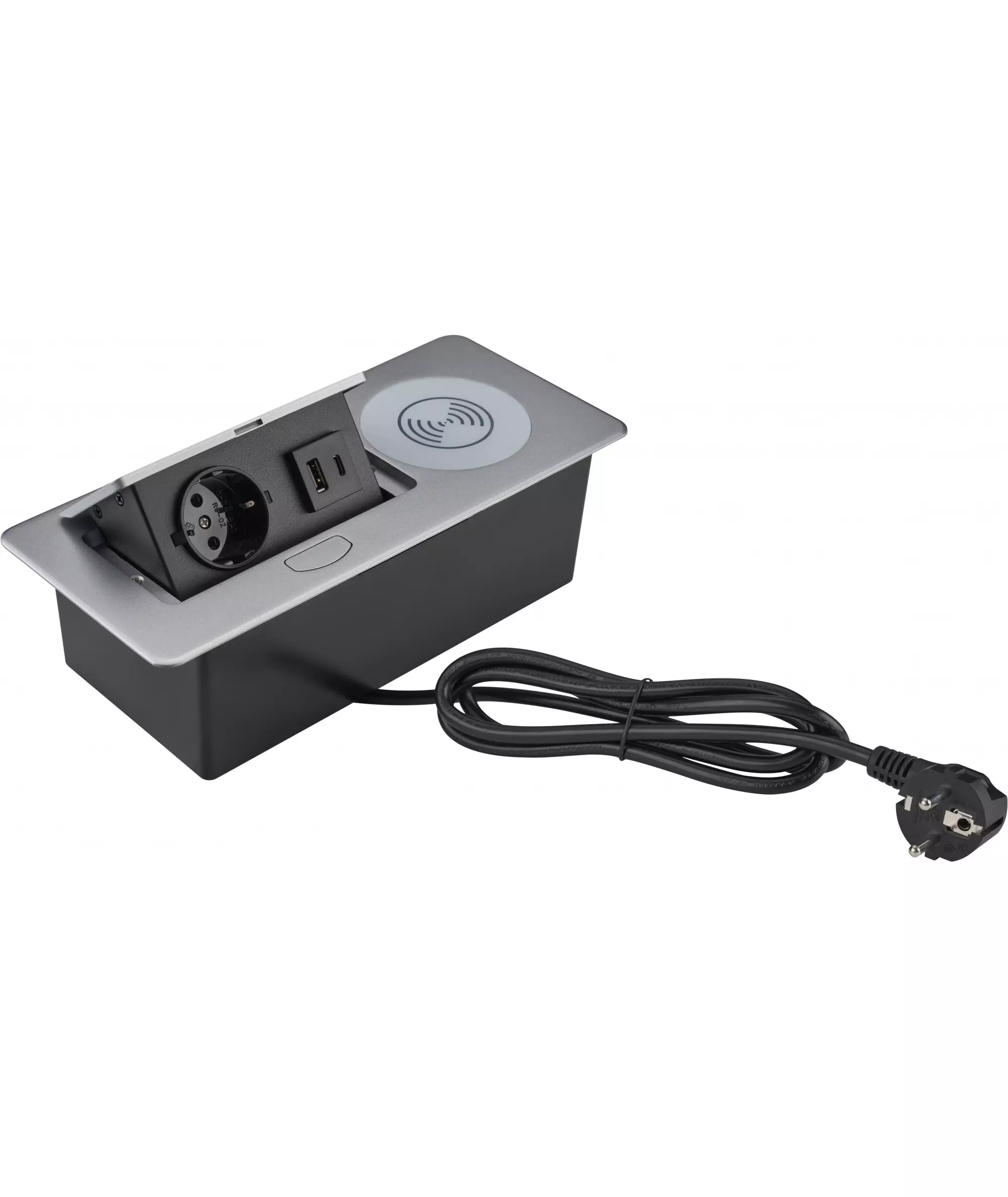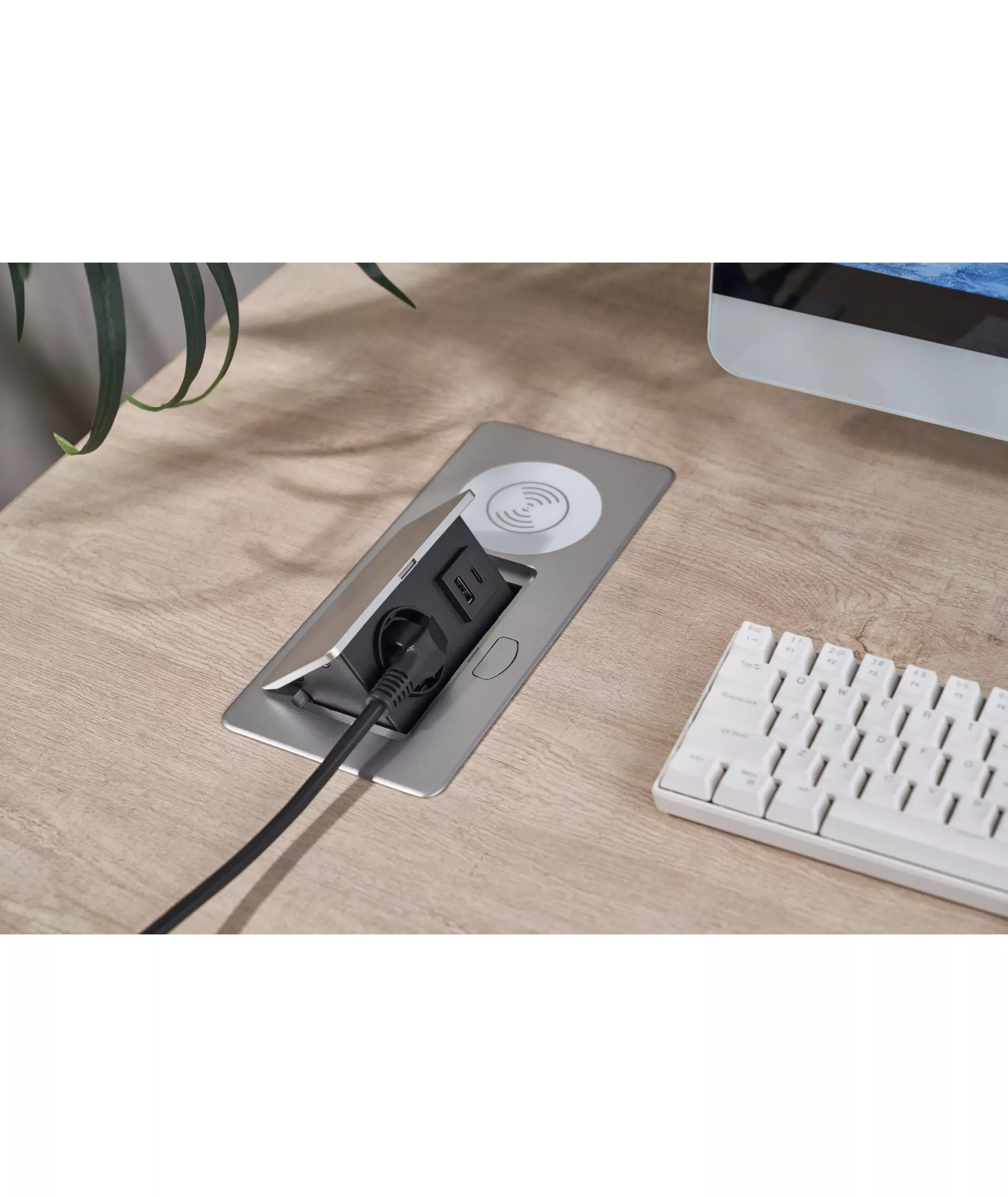 Розетка Cactus CS-SOCKET-USBA/C-WLESS для столешницы 26.5x11.8x6.5см серебристый
