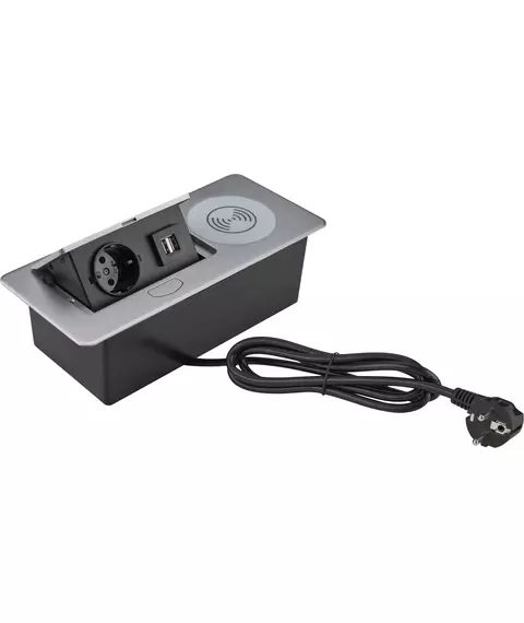 Розетка Cactus CS-SOCKET-USBA-WLESS для столешницы 26.5x11.8x6.5см серебристый