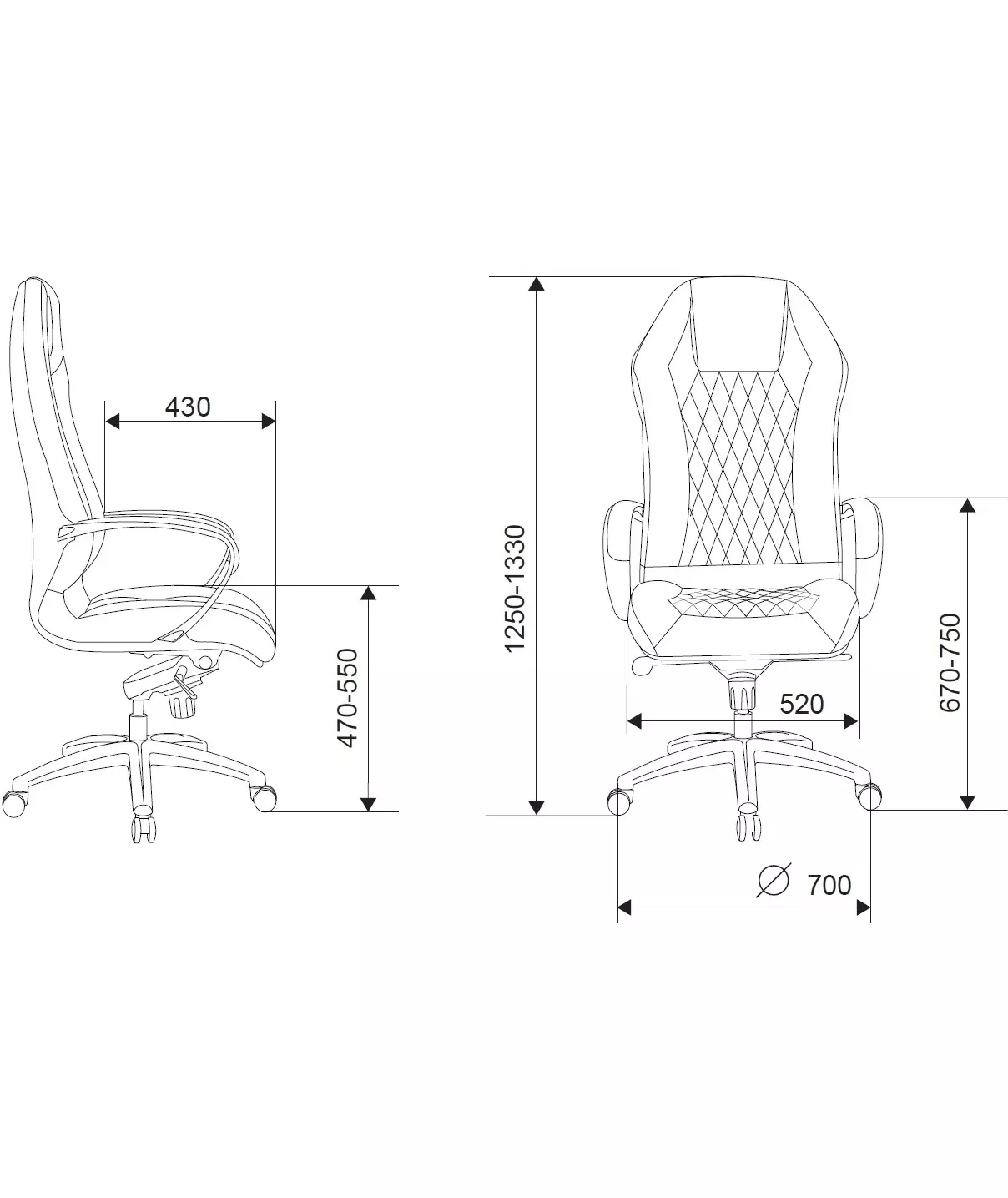 | Глубина сиденья MIN | 430 мм |