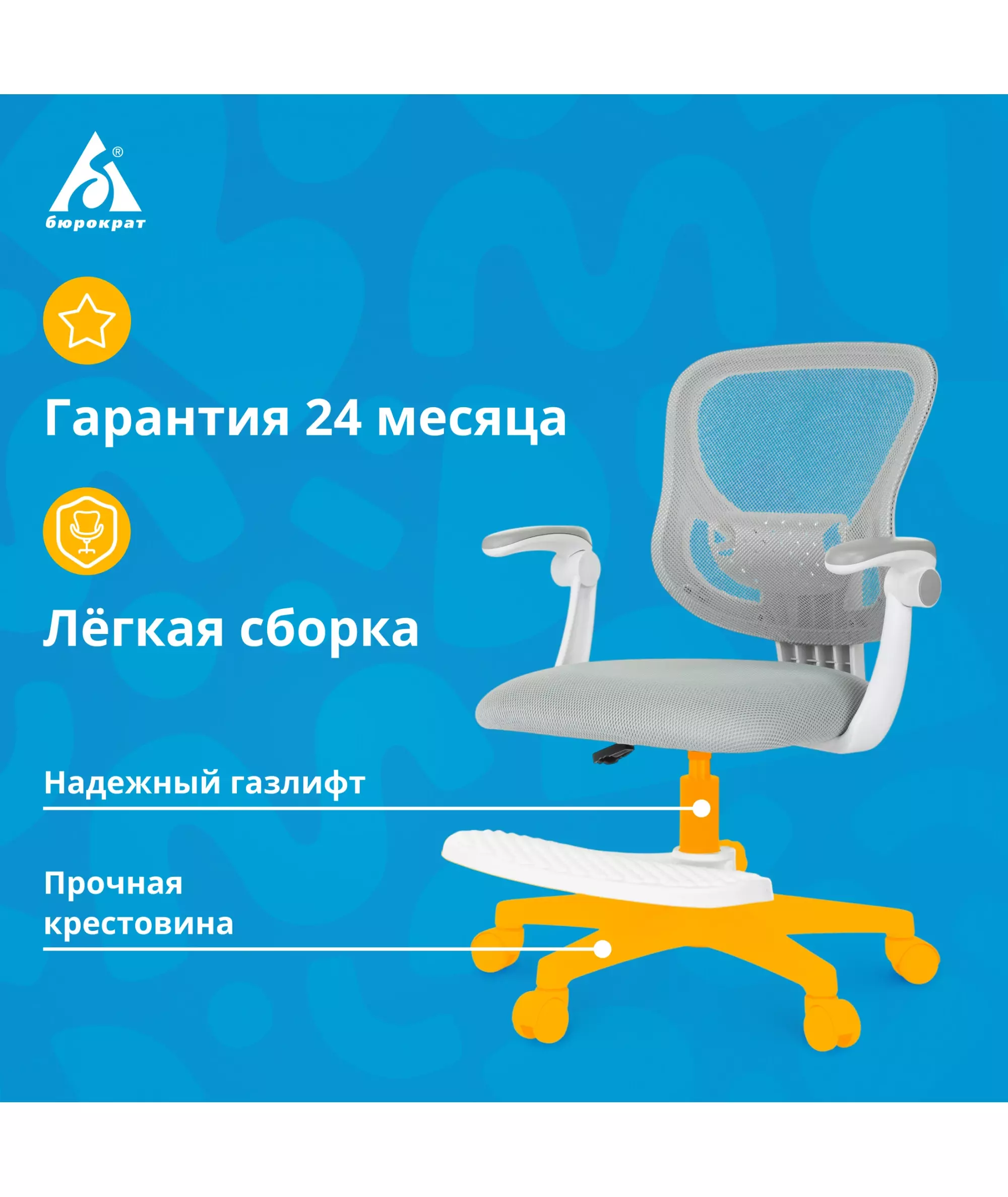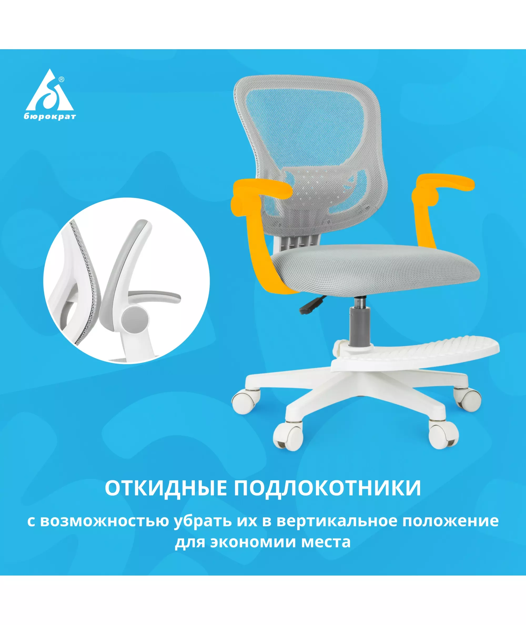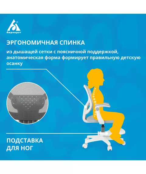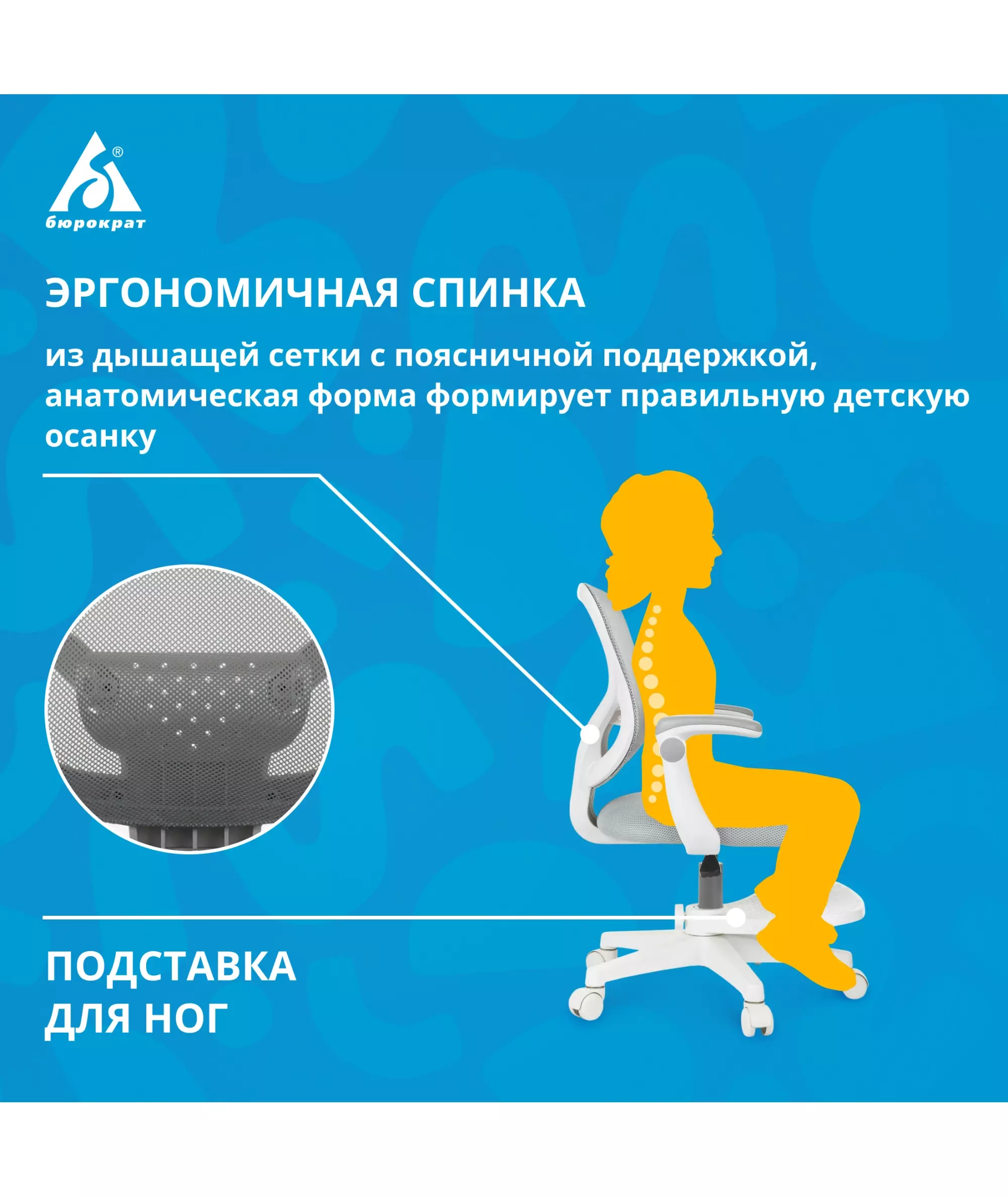 Кресло детское Бюрократ Burokids 3 GREY серый сетка/ткань, крестов. пластик, подст.для ног пластик белый