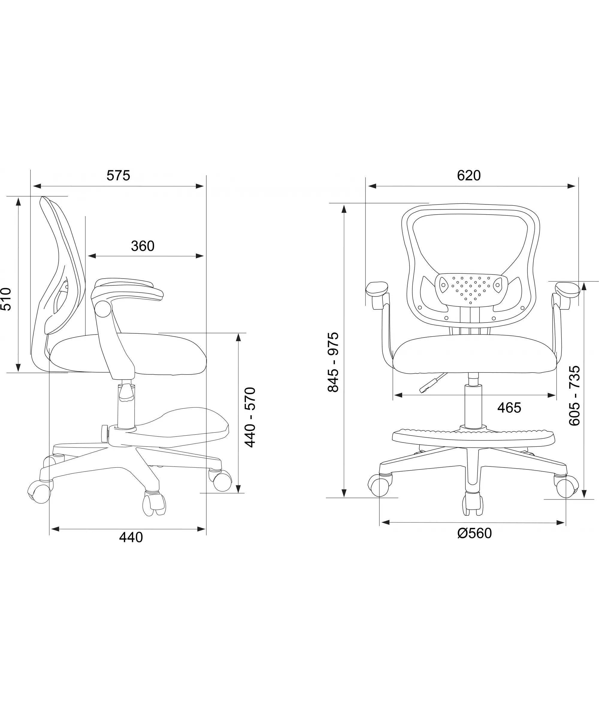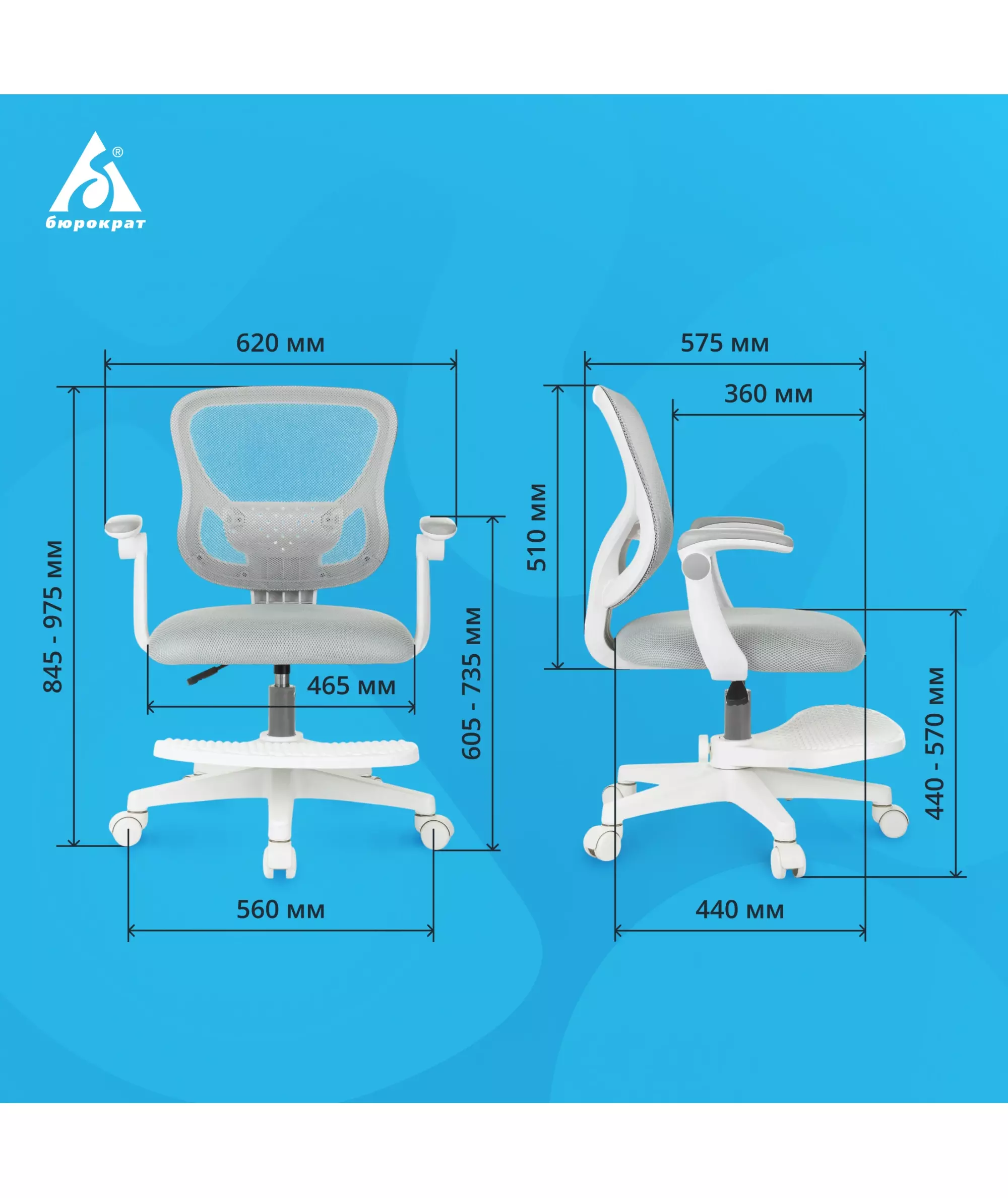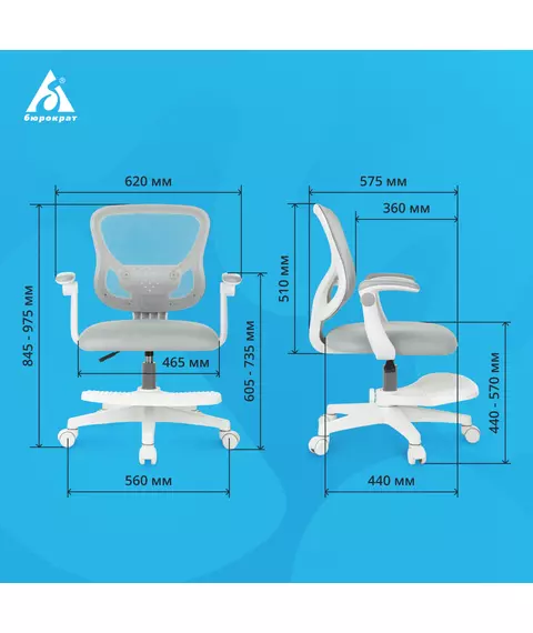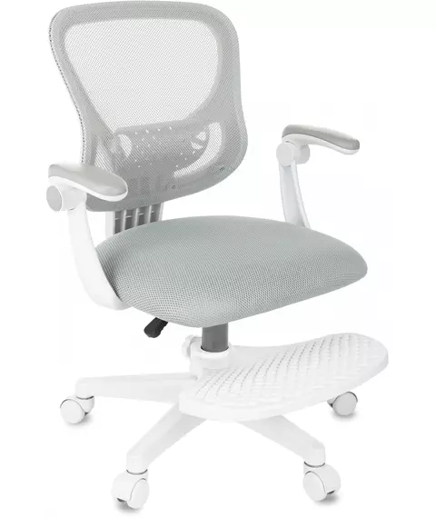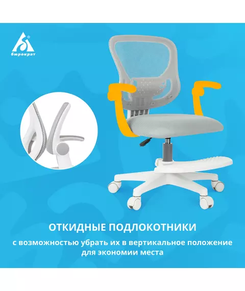 Кресло детское Бюрократ Burokids 3 GREY серый сетка/ткань, крестов. пластик, подст.для ног пластик белый