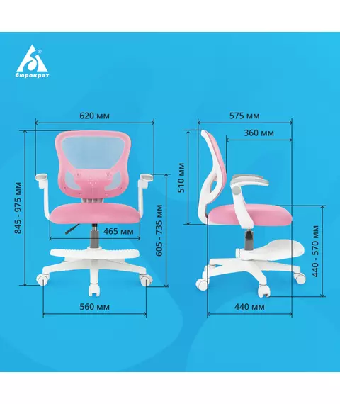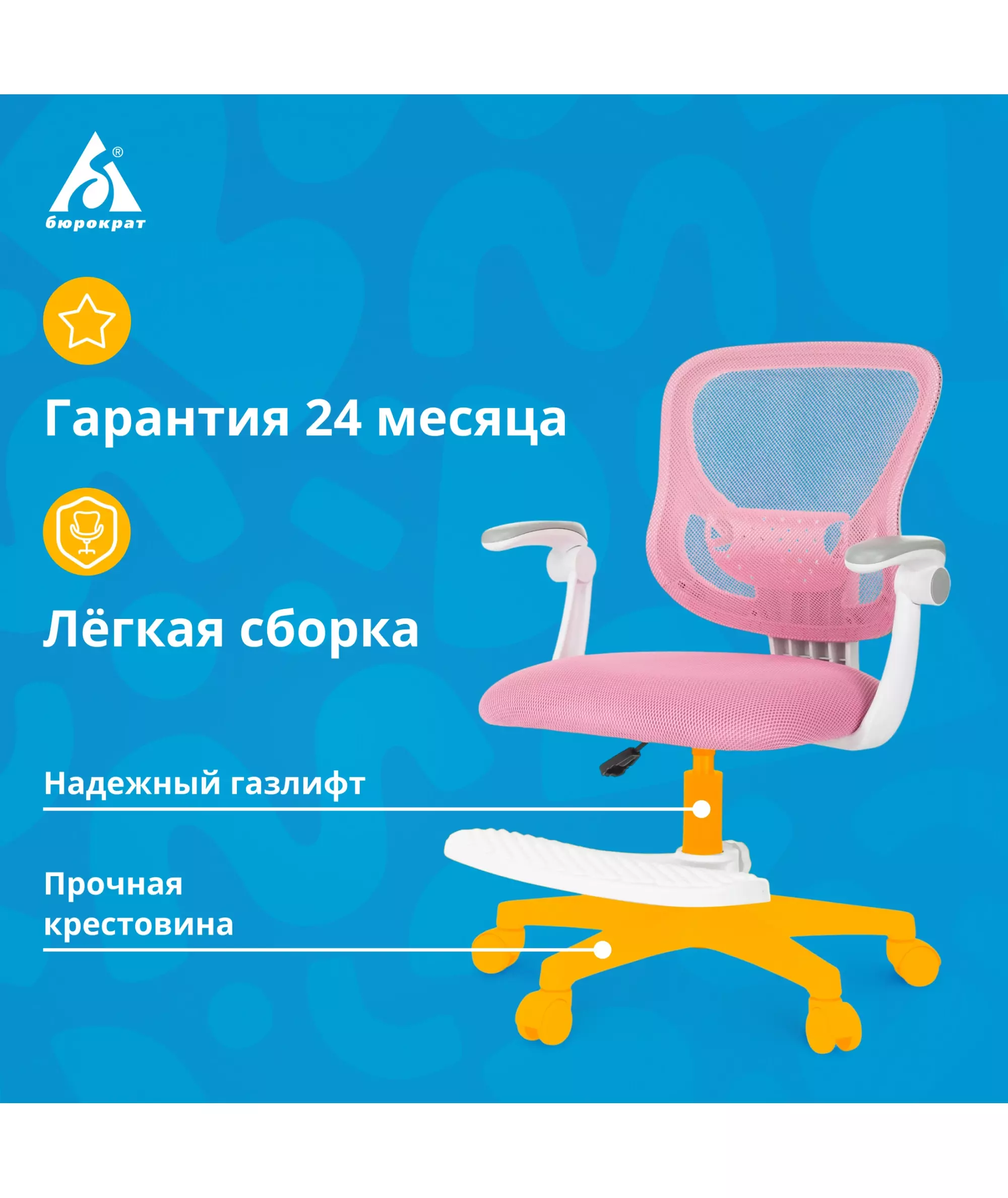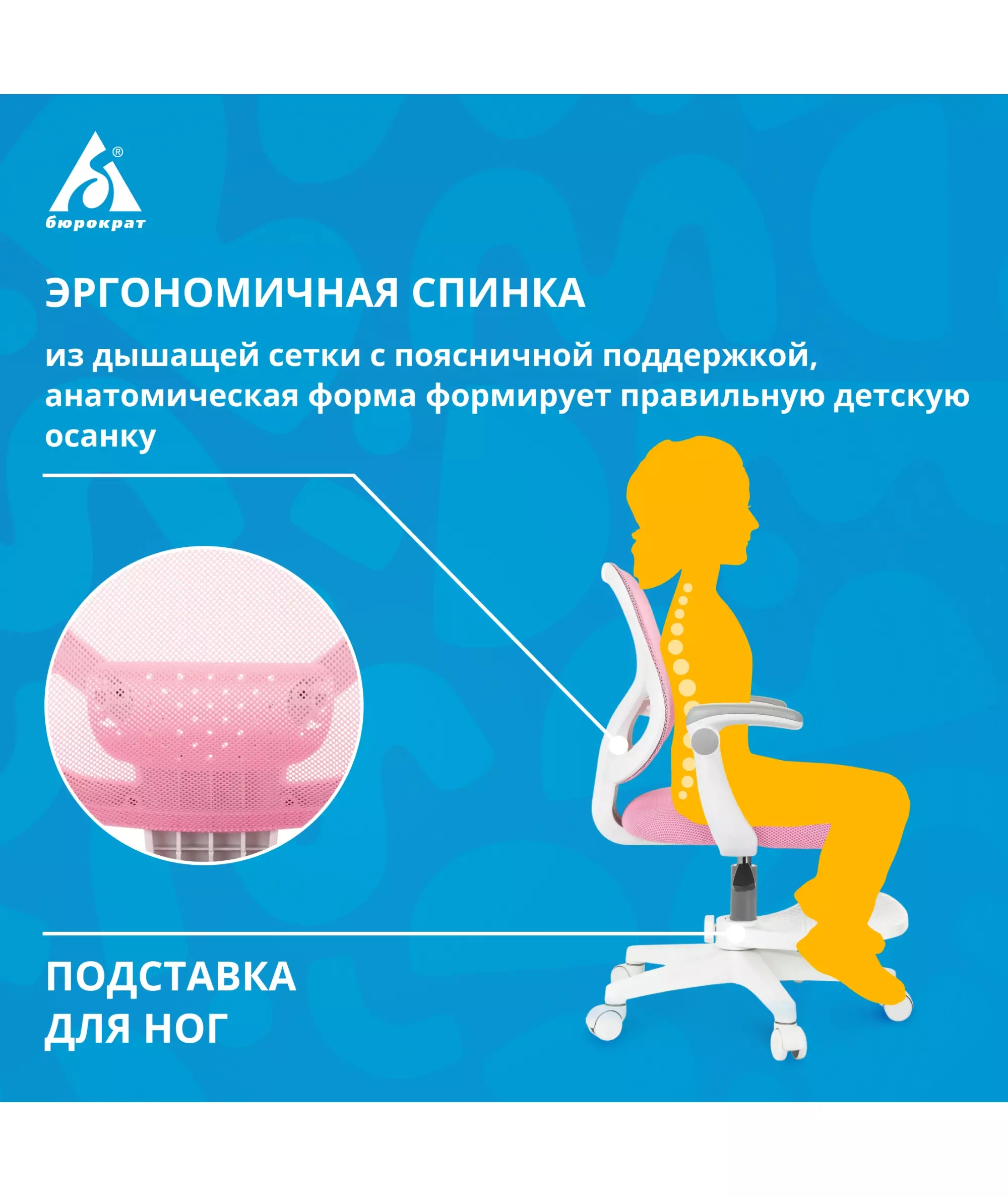 Кресло детское Бюрократ Burokids 3 PINK розовый сетка/ткань крестов. пластик подст.для ног пластик белый