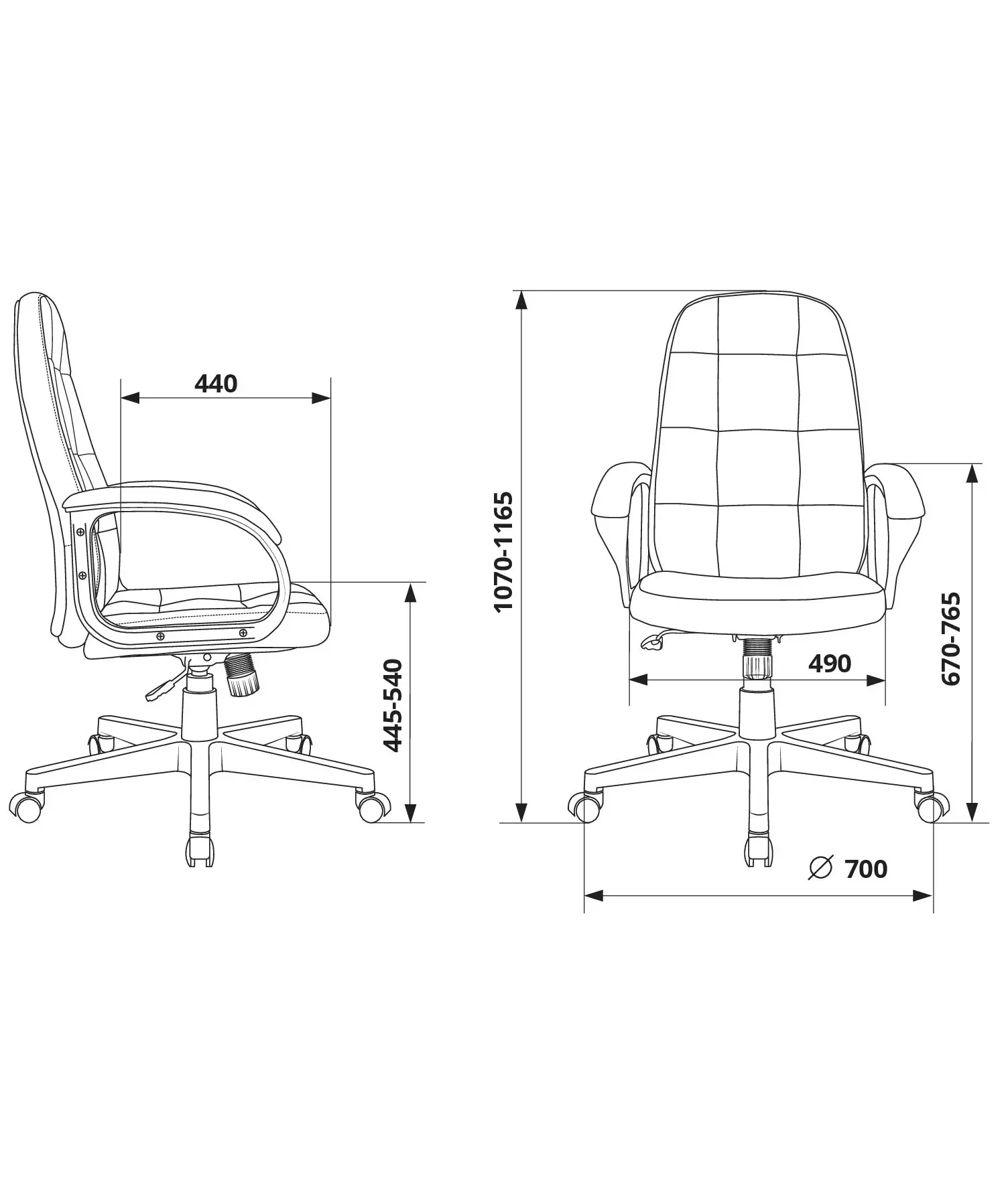 | Высота кресла / стула MIN | 1070 мм |