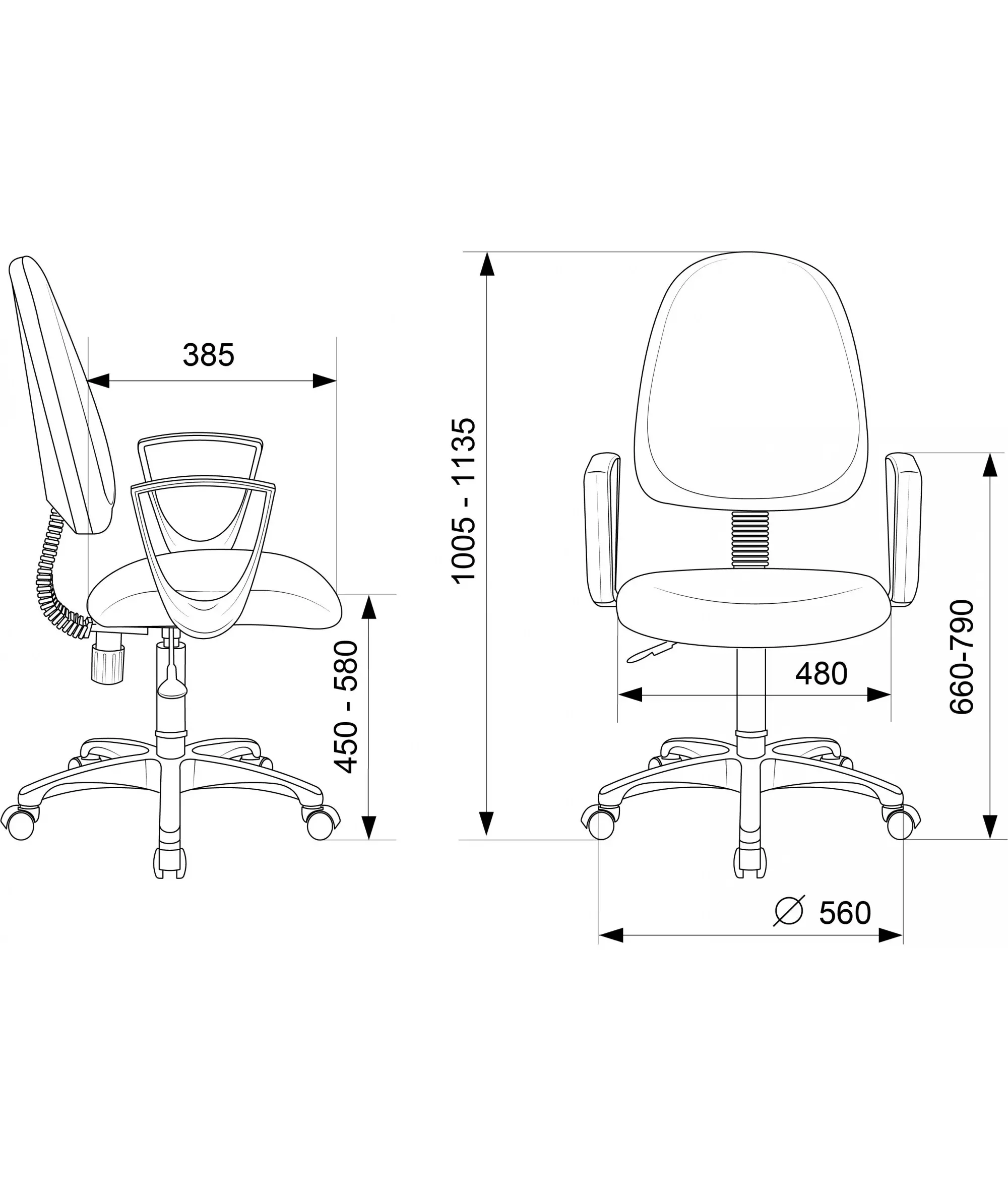| Высота с подлокотниками MIN | 660 мм |