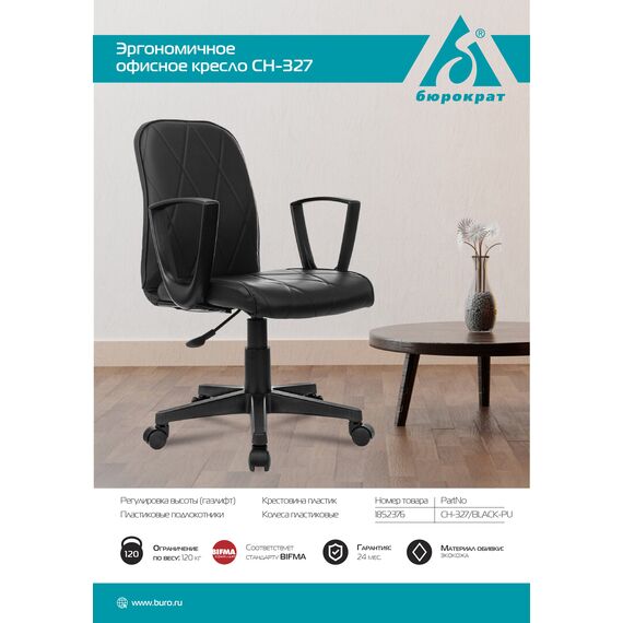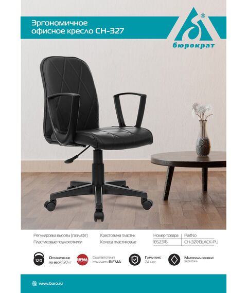 Кресло Бюрократ CH-327/BLACK-PU черный эко.кожа крестов. пластик черный