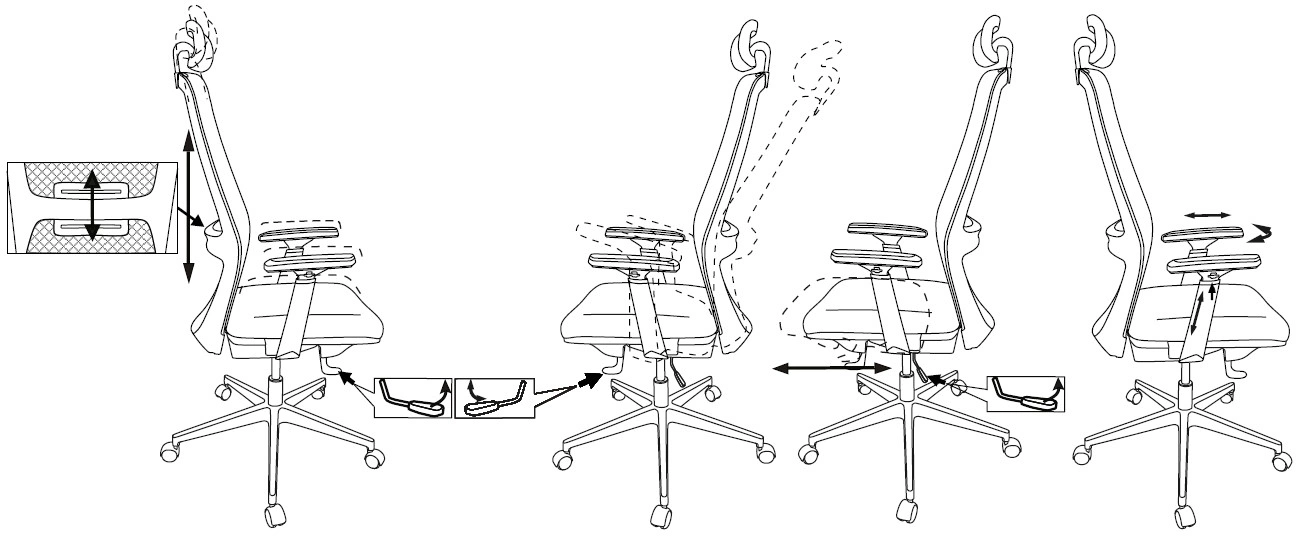 | Особенности | прочная кевларовая обивка-сетка, слайдер, регулируемая поддержка спины |