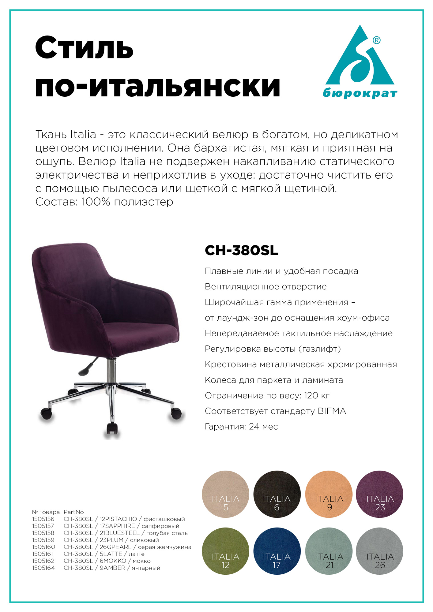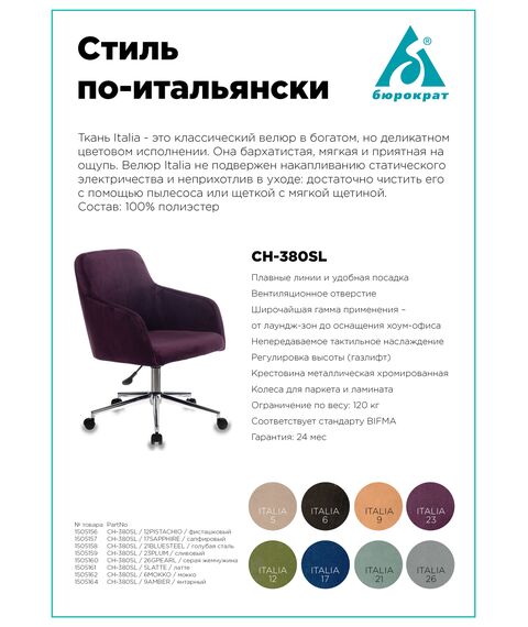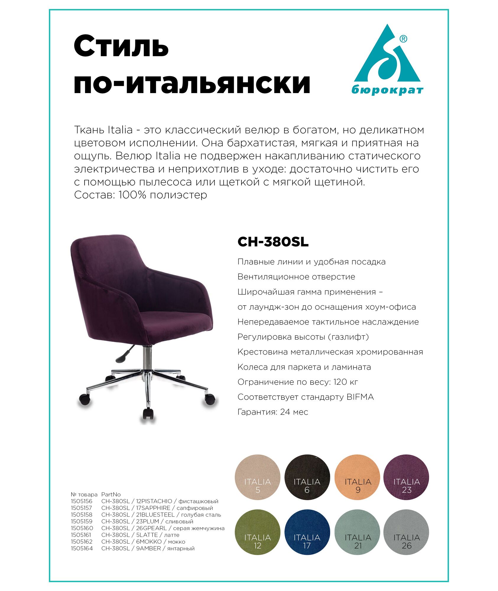Кресло Бюрократ CH-380SL/9AMBER янтарный Italia 9 крестов. металл хром