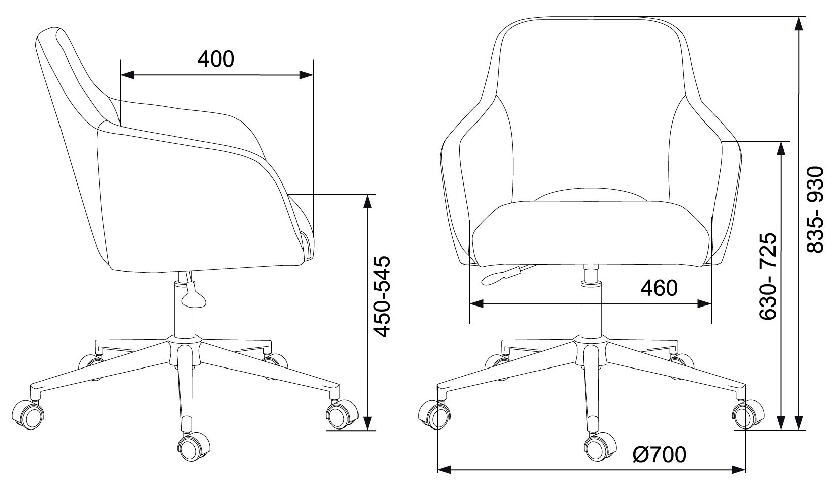 | Высота кресла / стула MIN | 835 мм |