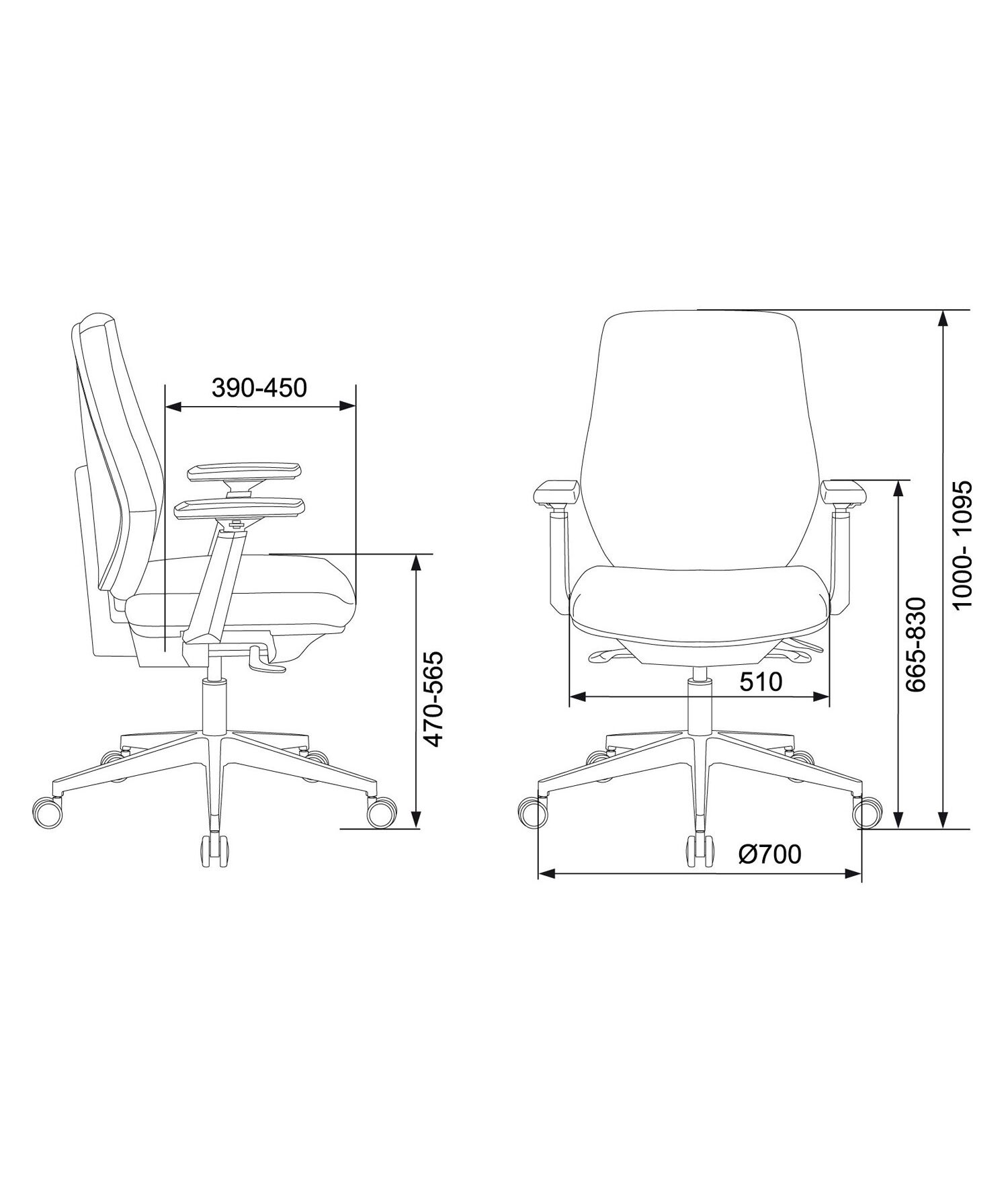 | Высота с подлокотниками MIN | 665 мм |
