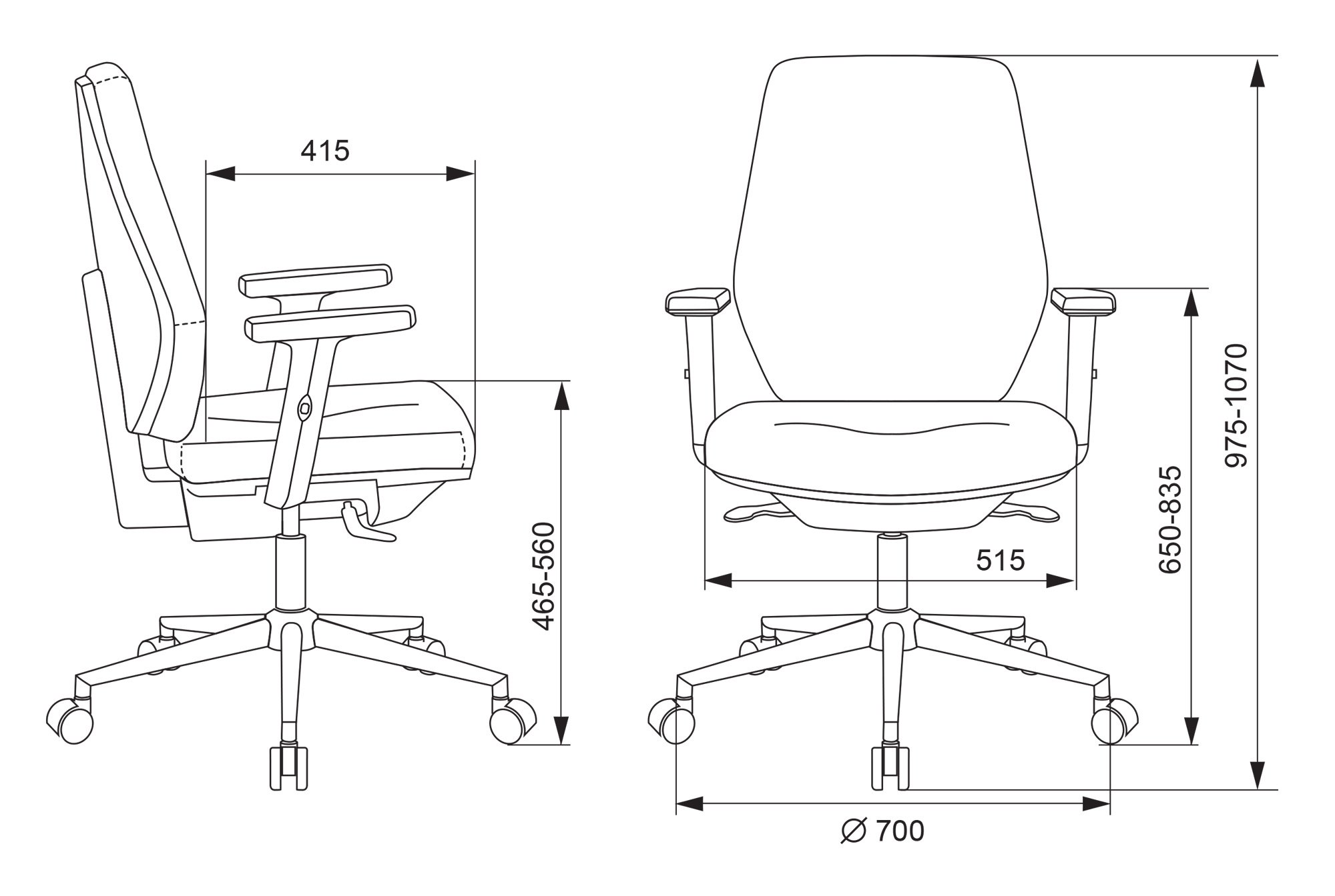 | Высота кресла / стула MIN | 975 мм |