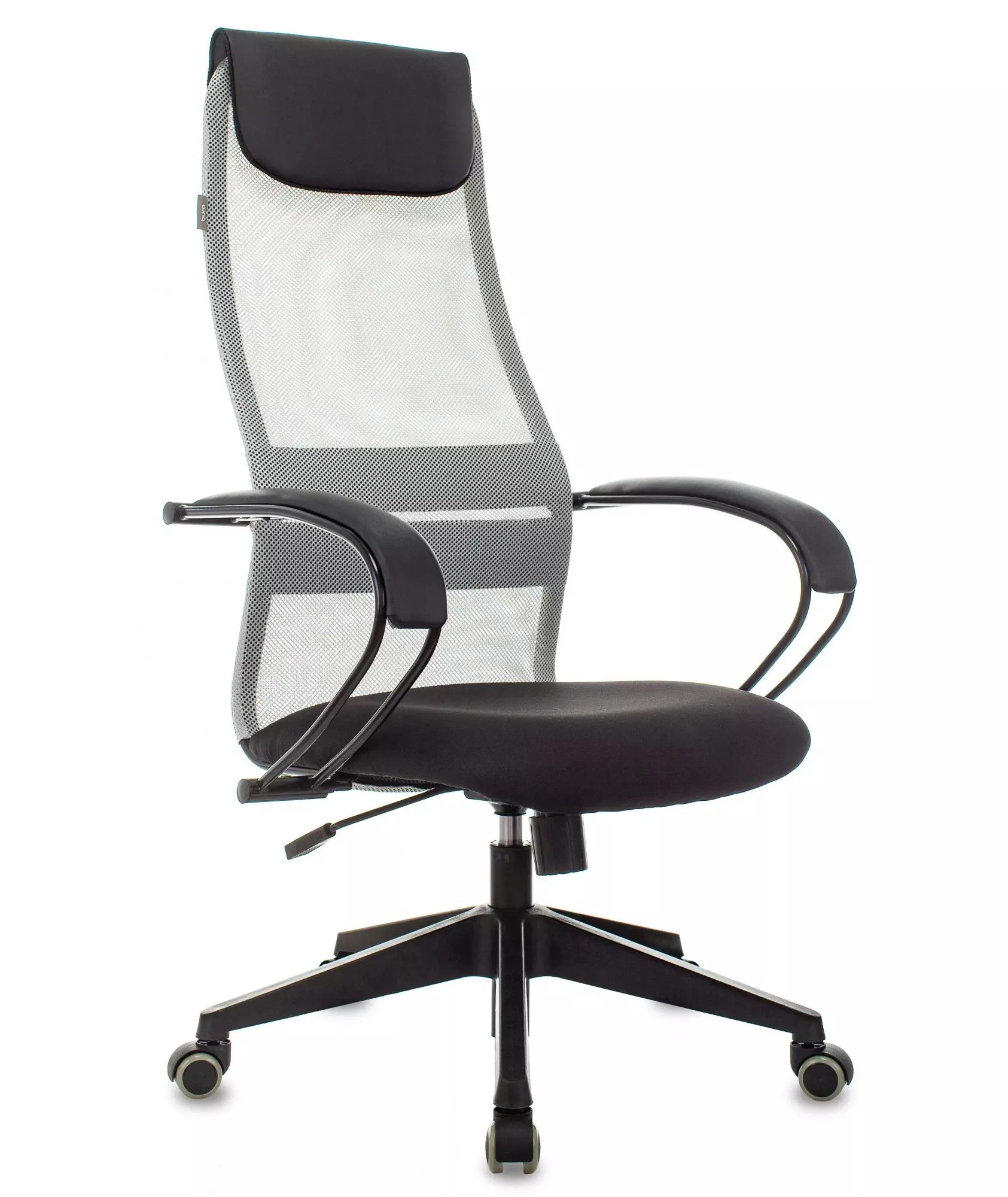 Кресло руководителя Бюрократ CH-607/LGREY светло-серый TW-02 сиденье черный сетка/ткань с подголов. крестов. пластик