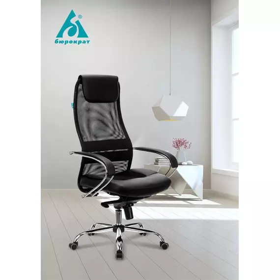 Кресло руководителя Бюрократ CH-609SL/BLACK черный TW-01 TW-11 эко.кожа/сетка с подголов. крестов. металл хром