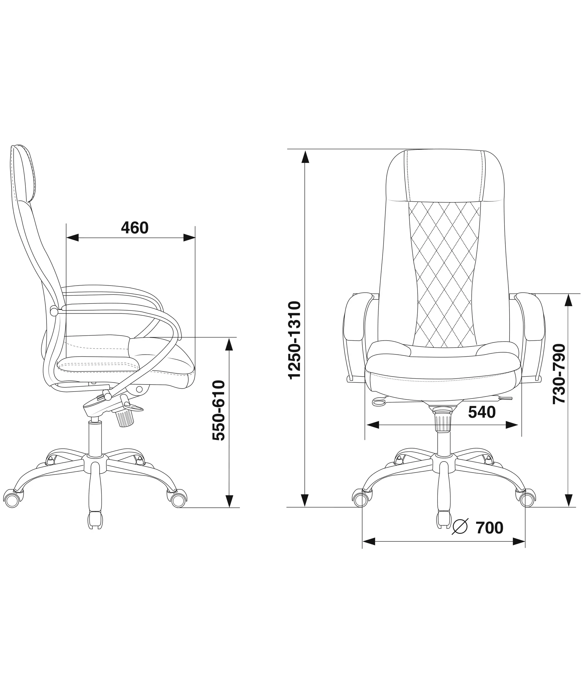 | Глубина сиденья MIN | 460 мм |