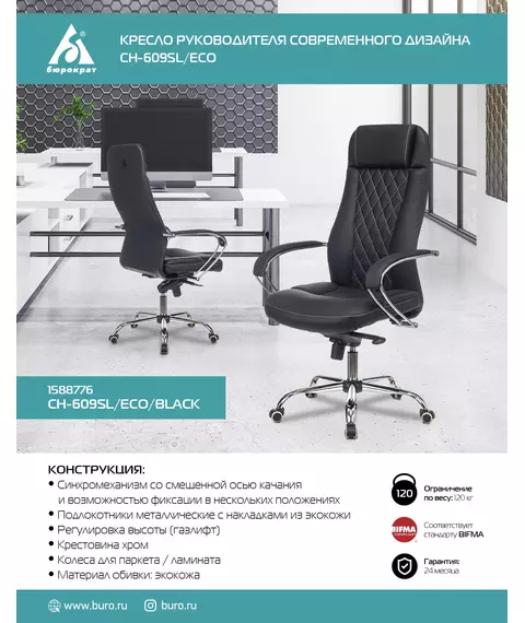 Кресло руководителя Бюрократ CH-609SL/ECO/BLACK черный эко.кожа крестов. металл хром