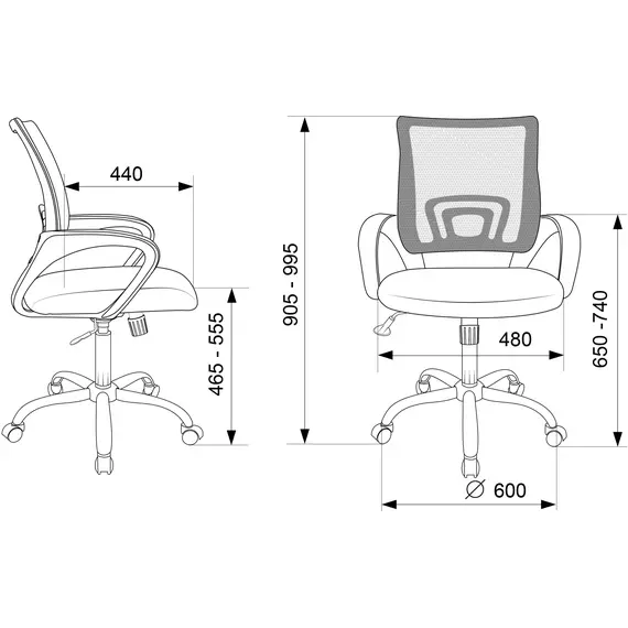 | Высота кресла / стула MIN | 905 мм |
