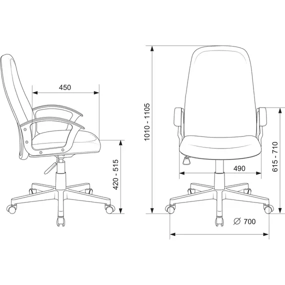 | Высота с подлокотниками MIN | 615 мм |