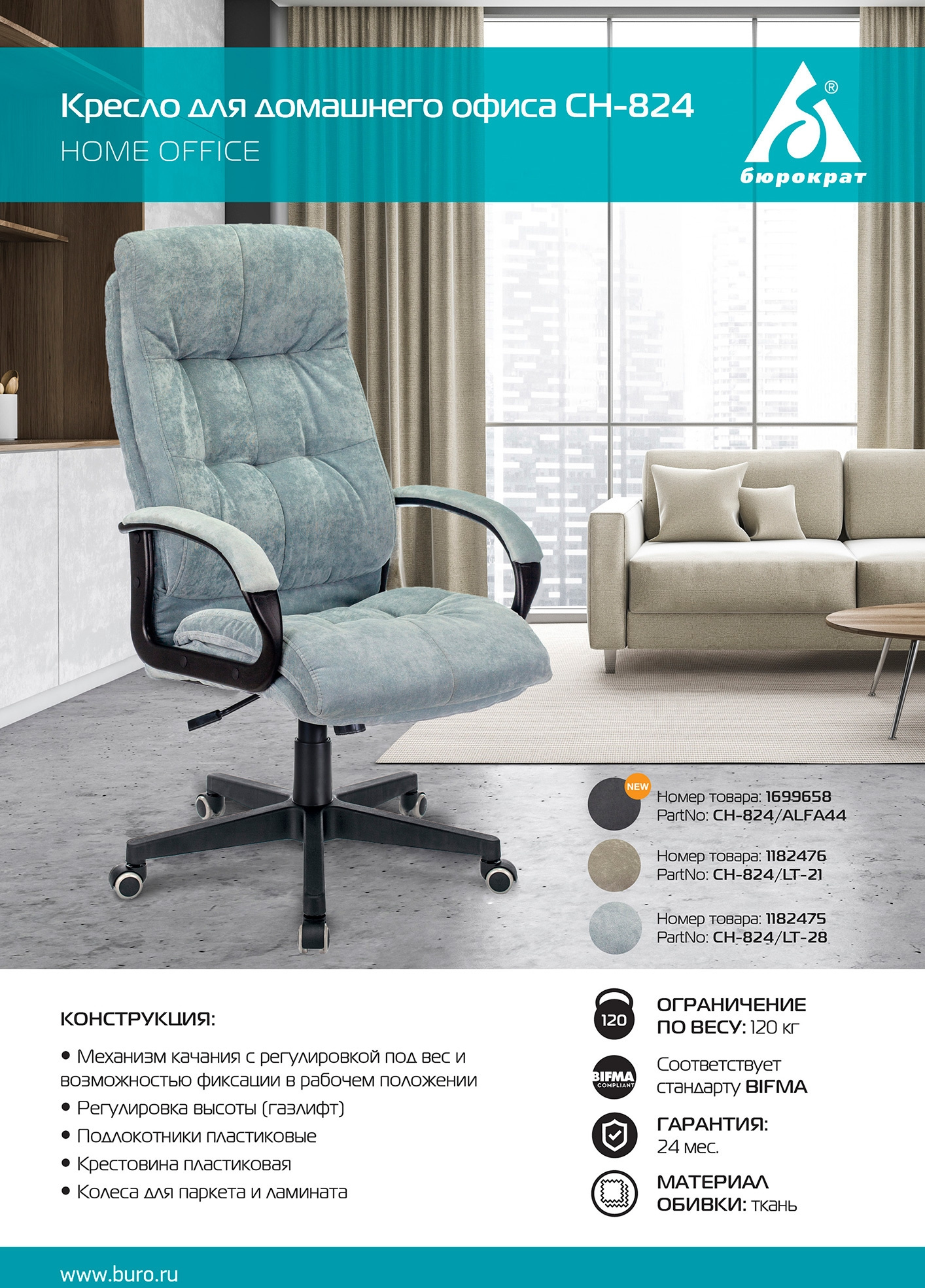 Кресло руководителя Бюрократ CH-824/ALFA44 Fabric серый Alfa 44 крестов. пластик