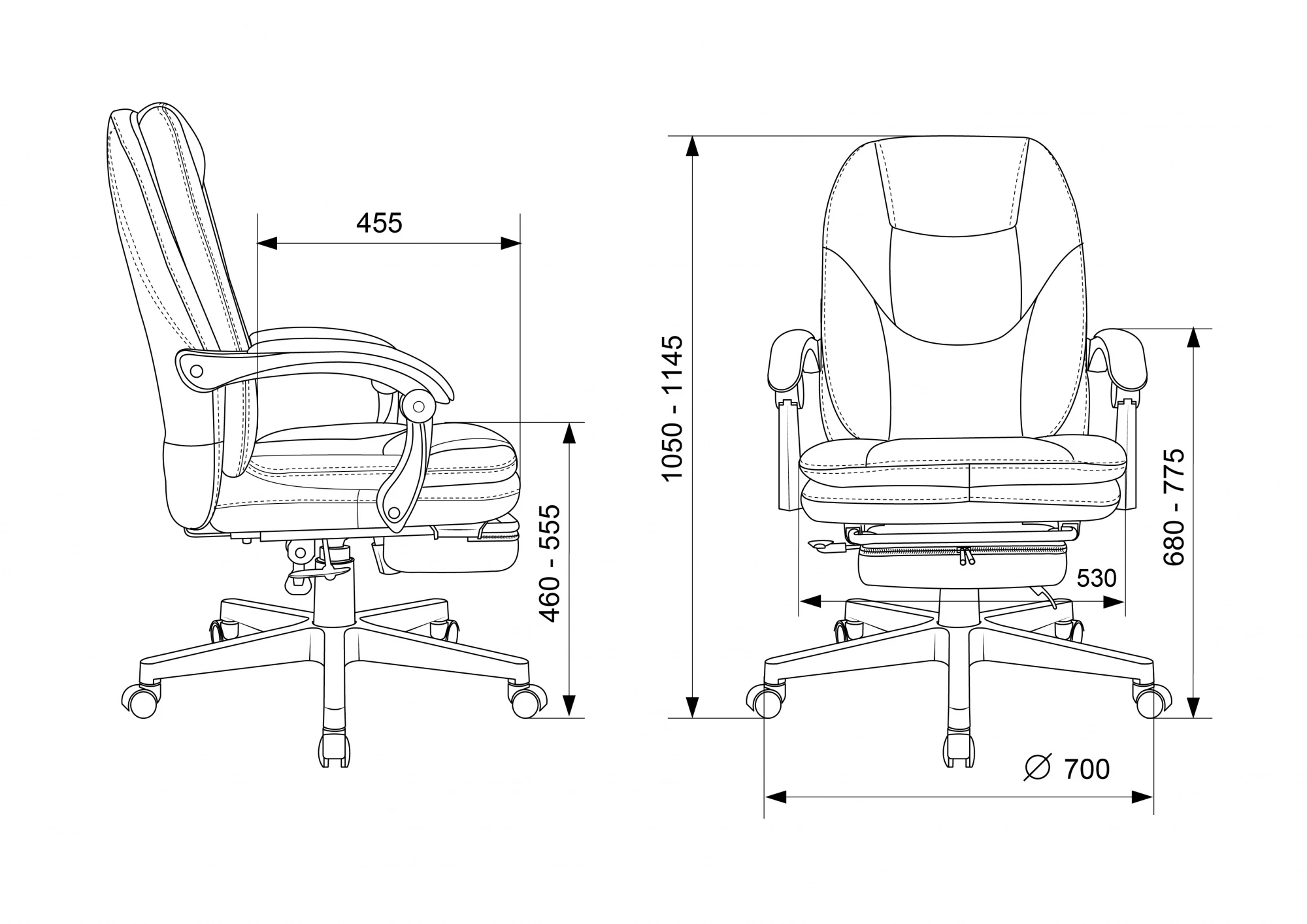 | Глубина сиденья MIN | 455 мм |