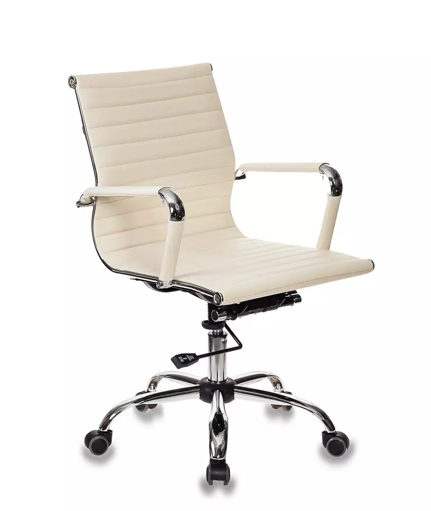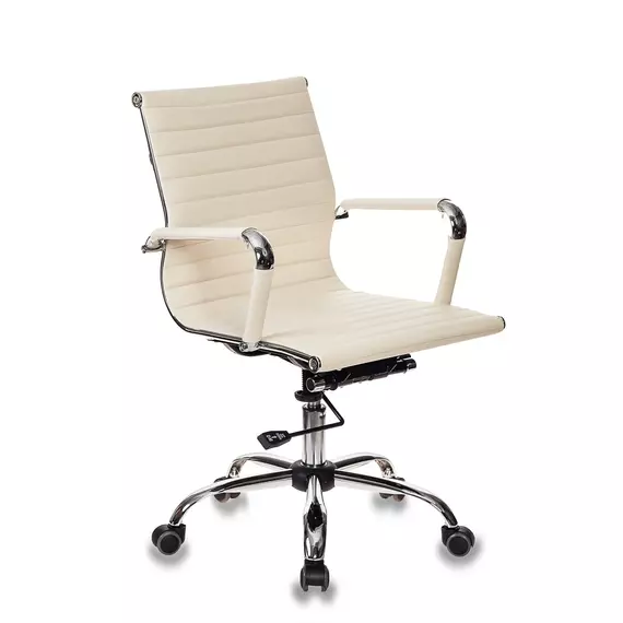 Кресло руководителя Бюрократ CH-883-LOW/IVORY слоновая кость эко.кожа низк.спин. крестов. металл хром