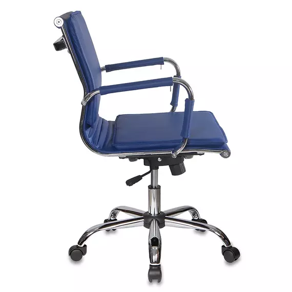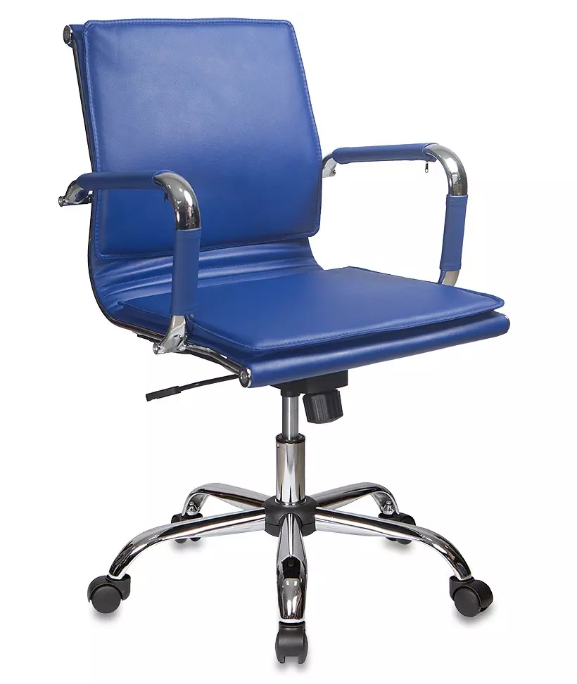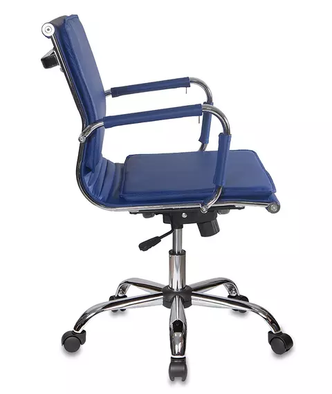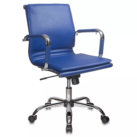 Кресло руководителя Бюрократ CH-993-LOW/BLUE синий эко.кожа низк.спин. крестов. металл хром