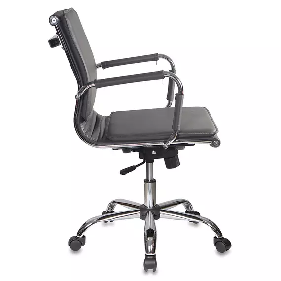 Кресло руководителя Бюрократ CH-993-LOW/GREY серый эко.кожа низк.спин. крестов. металл хром