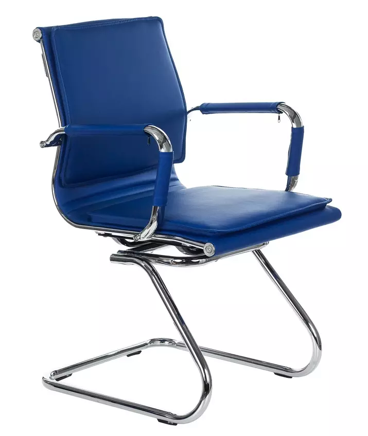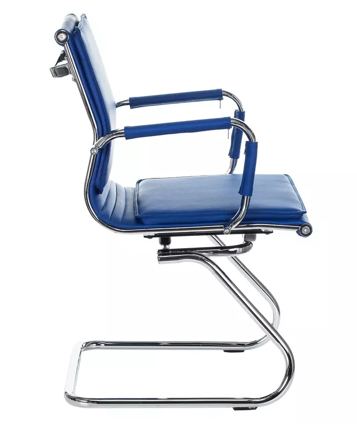 Кресло Бюрократ CH-993-LOW-V/BLUE синий эко.кожа низк.спин. полозья металл хром