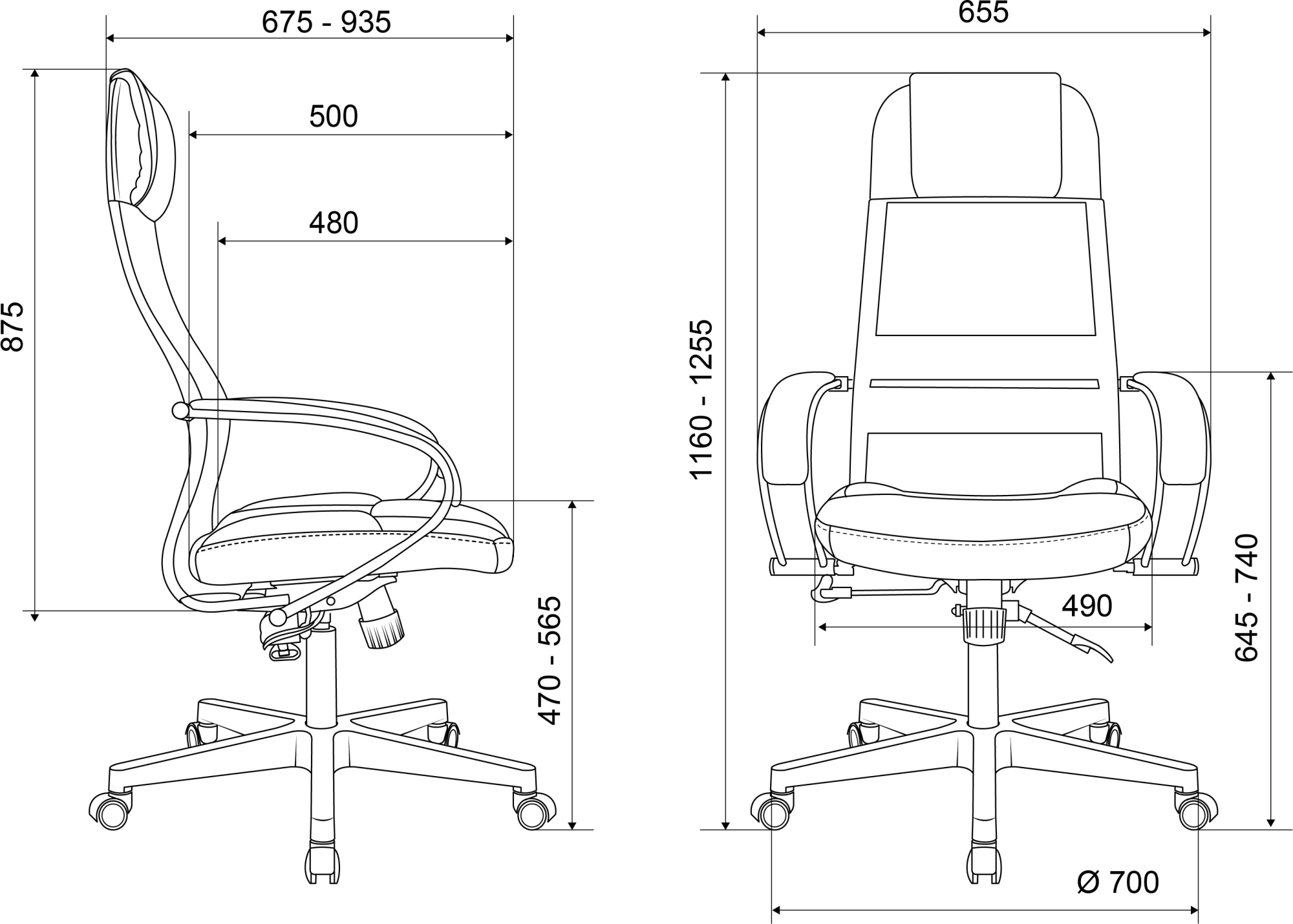 | Ширина с подлокотниками | 655 мм |