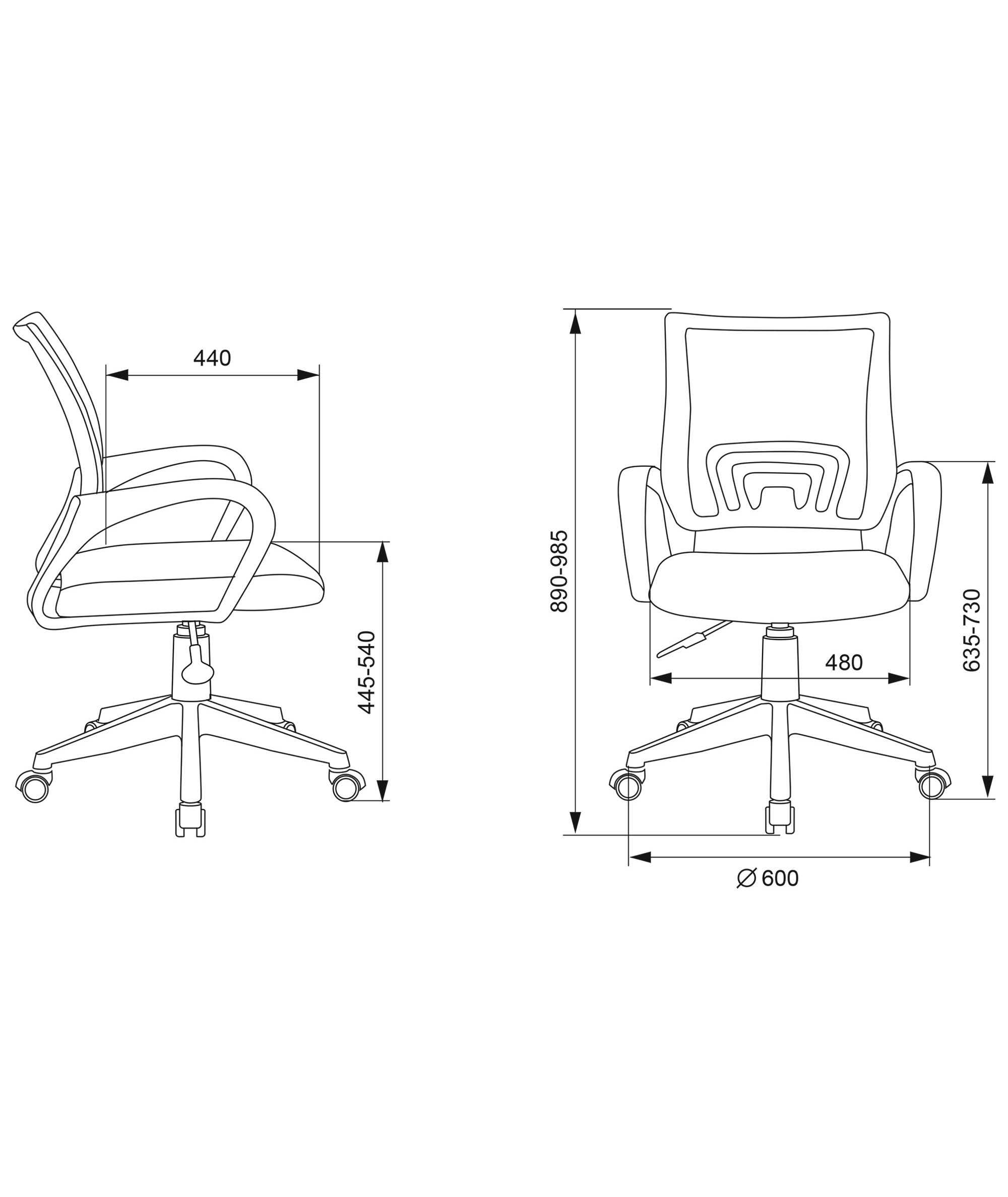 | Высота кресла / стула MIN | 890 мм |