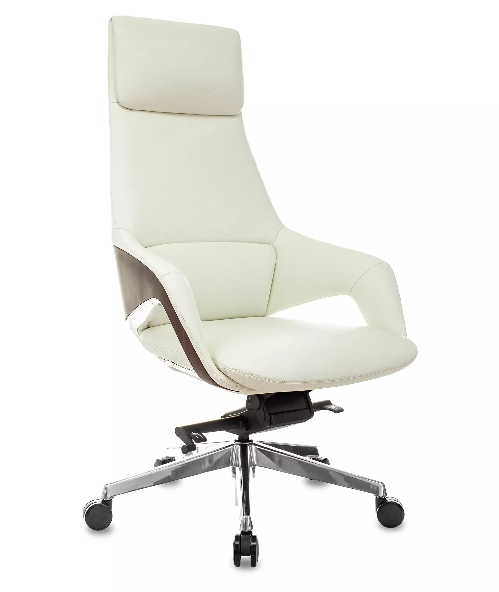 Кресло руководителя Бюрократ _DAO-2/BEIGE белый кожа с подголовником, крестовина алюминий