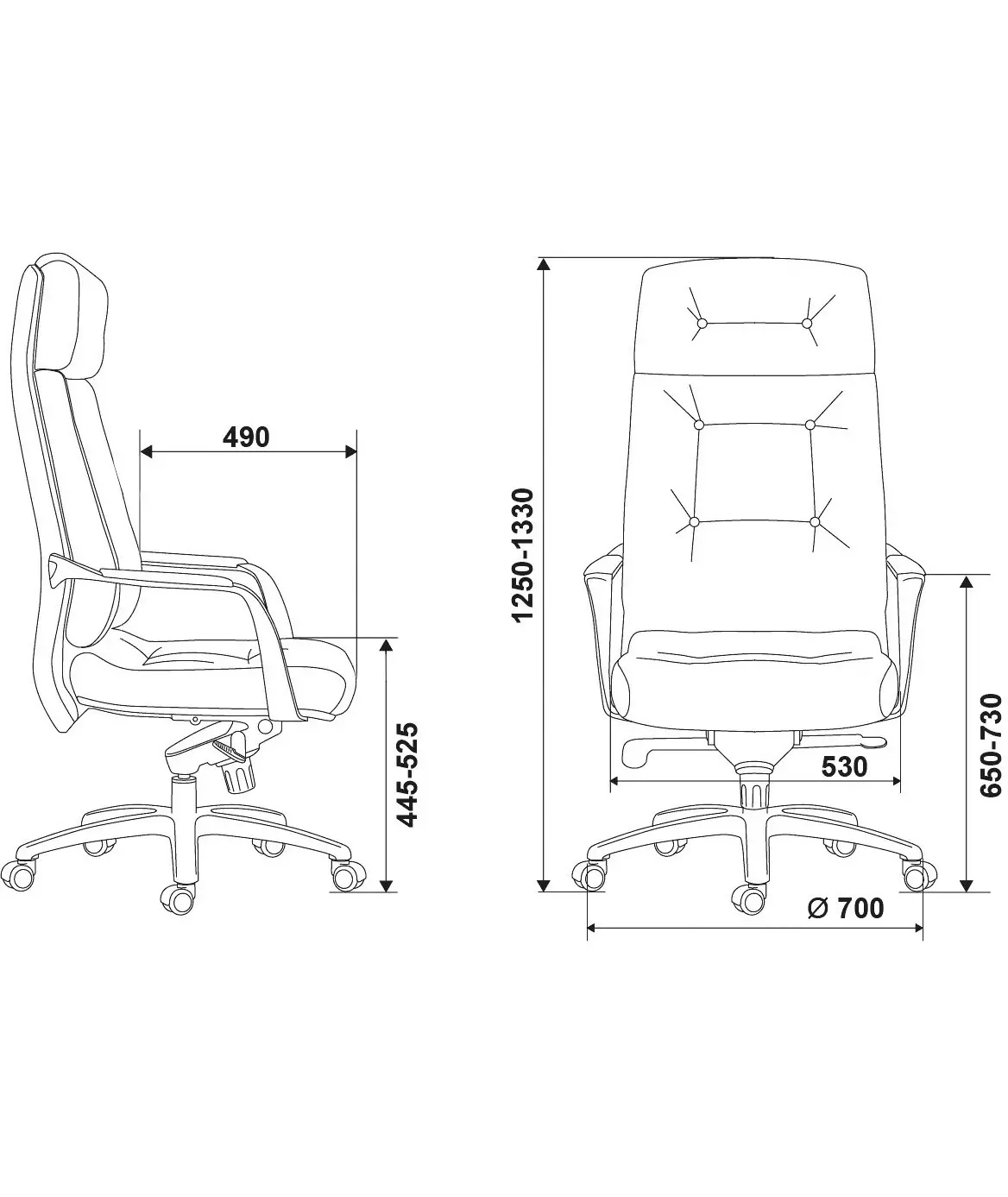 | Глубина сиденья MIN | 490 мм |