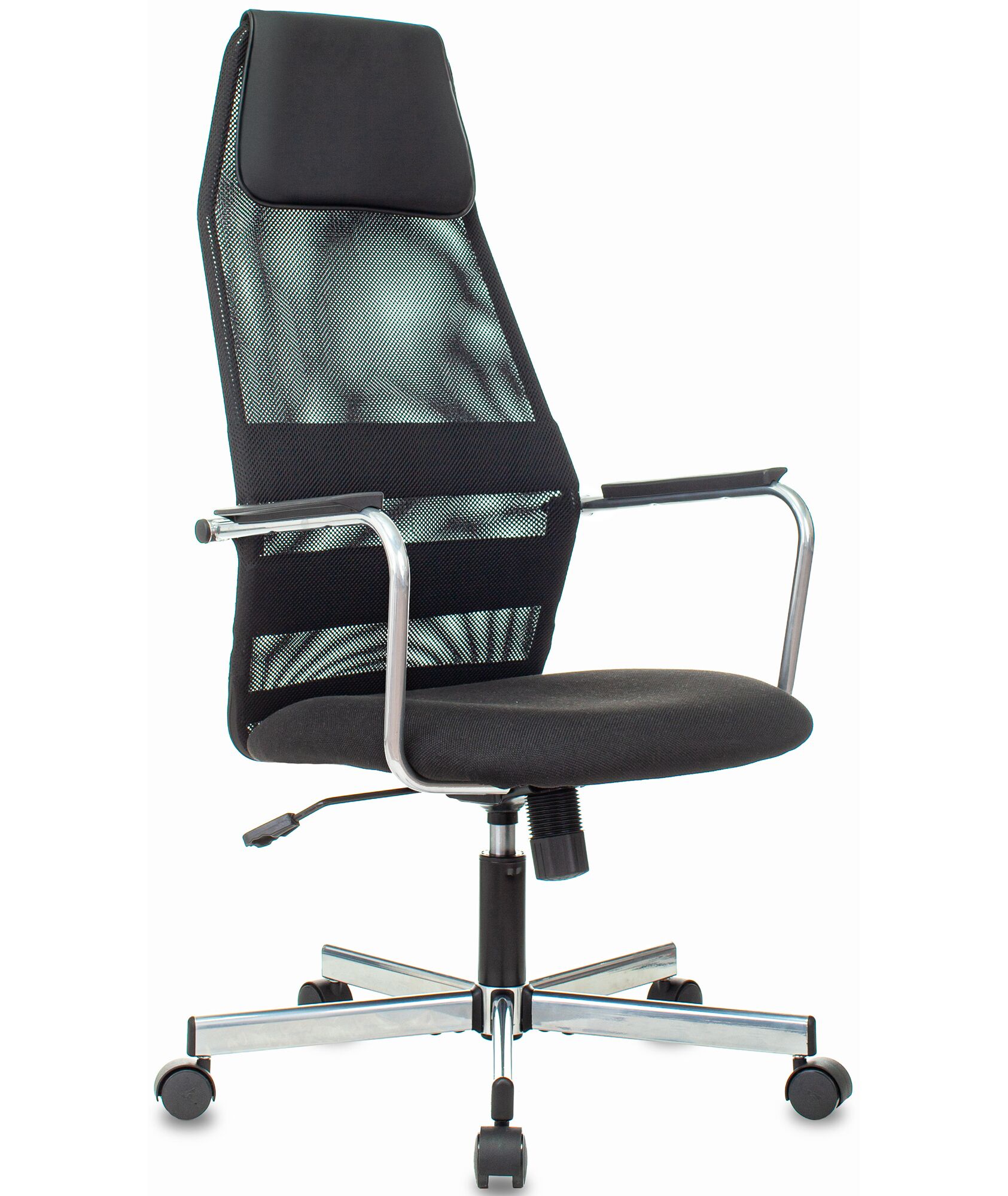 Кресло Бюрократ KB-5M/SL/BLACK черный сетка/ткань с подголов. крестов. металл хром