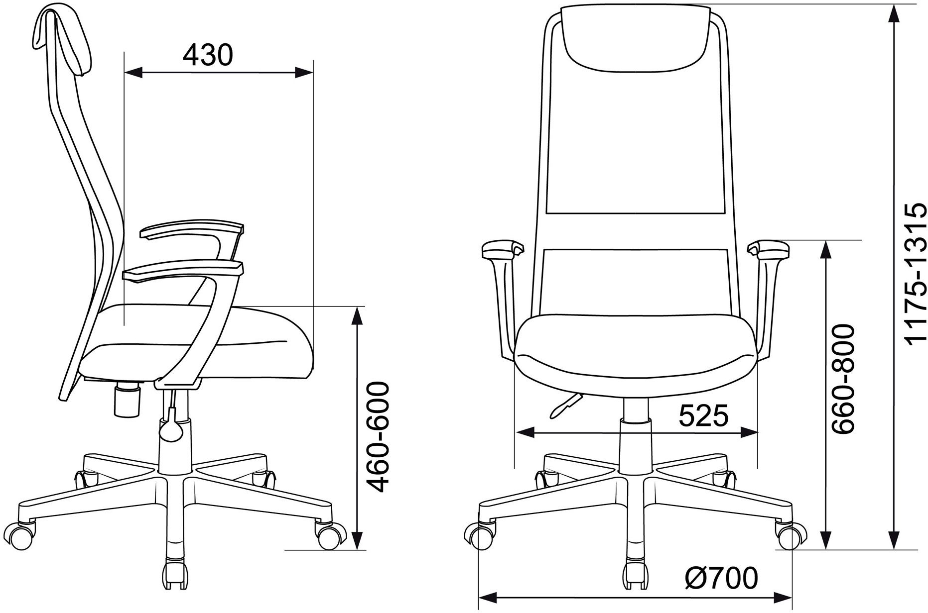 | Высота с подлокотниками MIN | 660 мм |