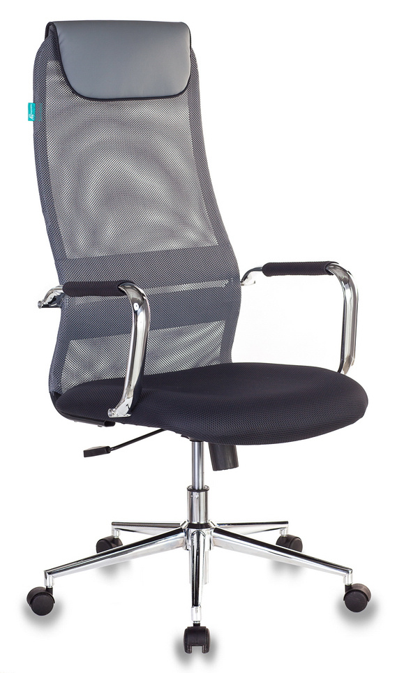 Кресло руководителя Бюрократ KB-9N/DG/TW-12 темно-серый TW-04 TW-12 сетка/ткань с подголов. крестов. металл хром