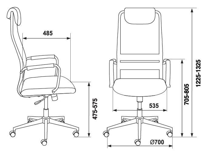 | Высота кресла / стула MIN | 1225 мм |