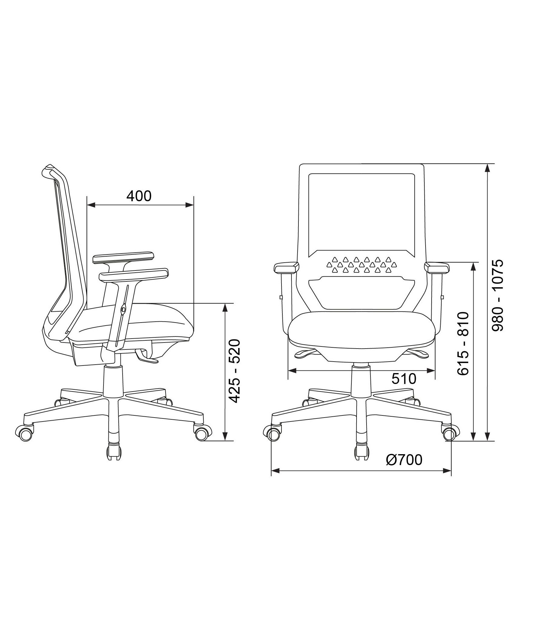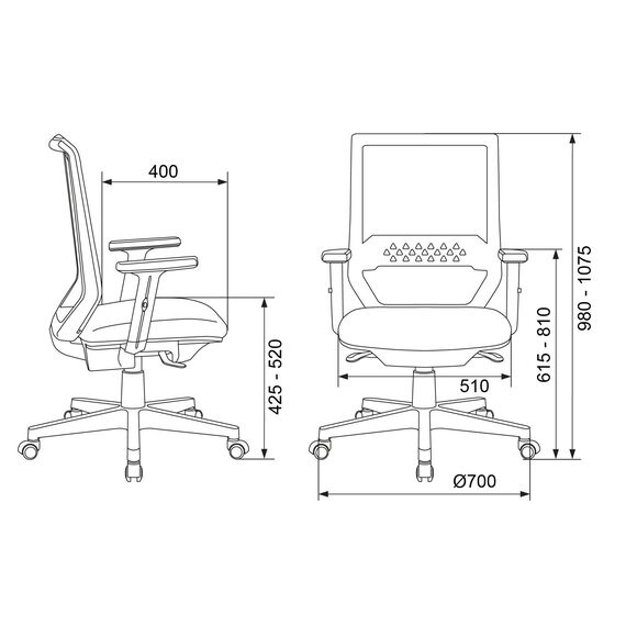| Высота с подлокотниками MIN | 615 мм |