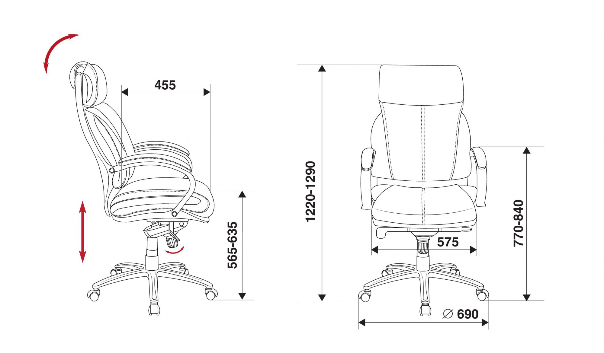 | Высота с подлокотниками MIN | 760 мм |