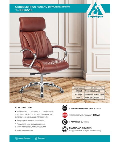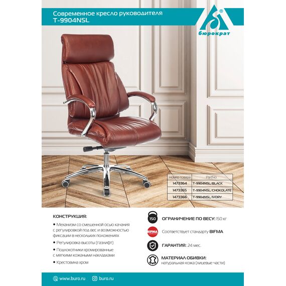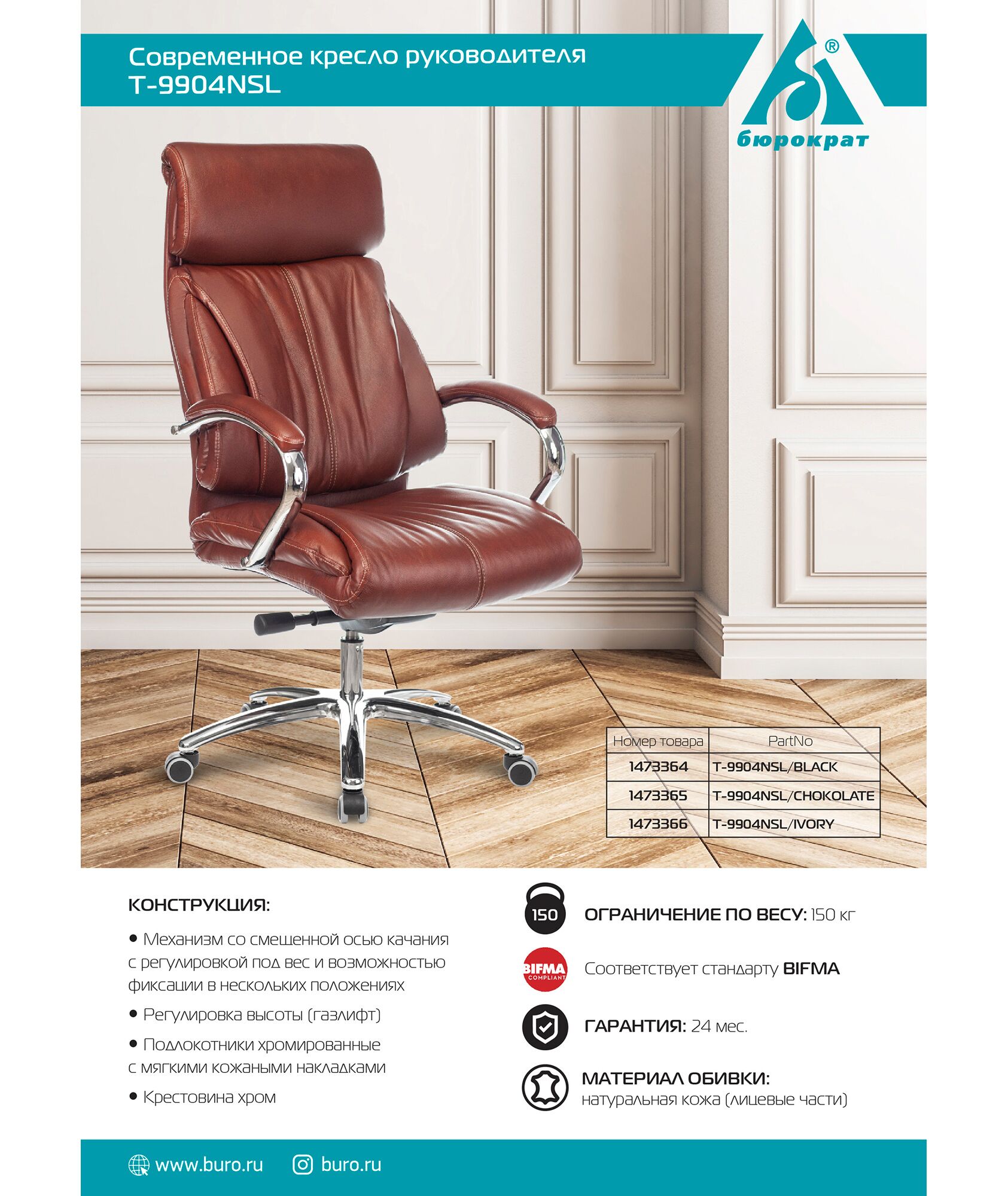 Кресло руководителя Бюрократ T-9904NSL/BLACK черный кожа крестовка металл хром