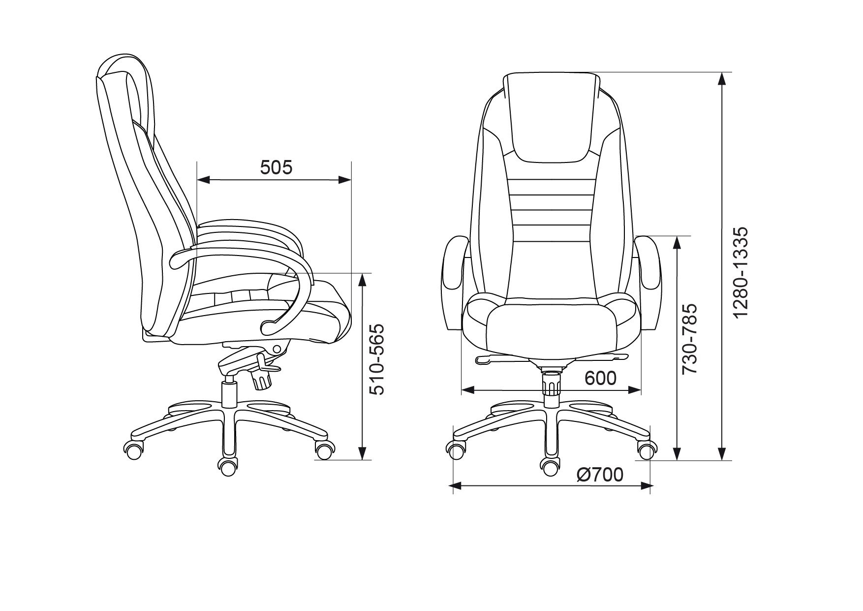 | Высота с подлокотниками MIN | 730 мм |
