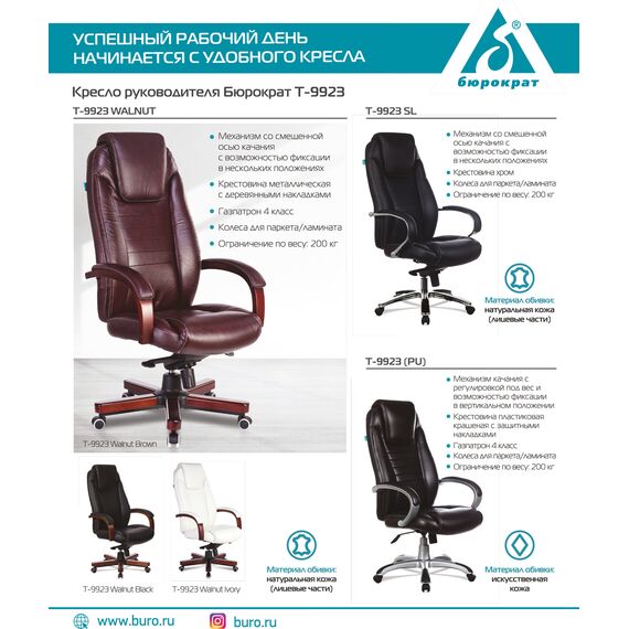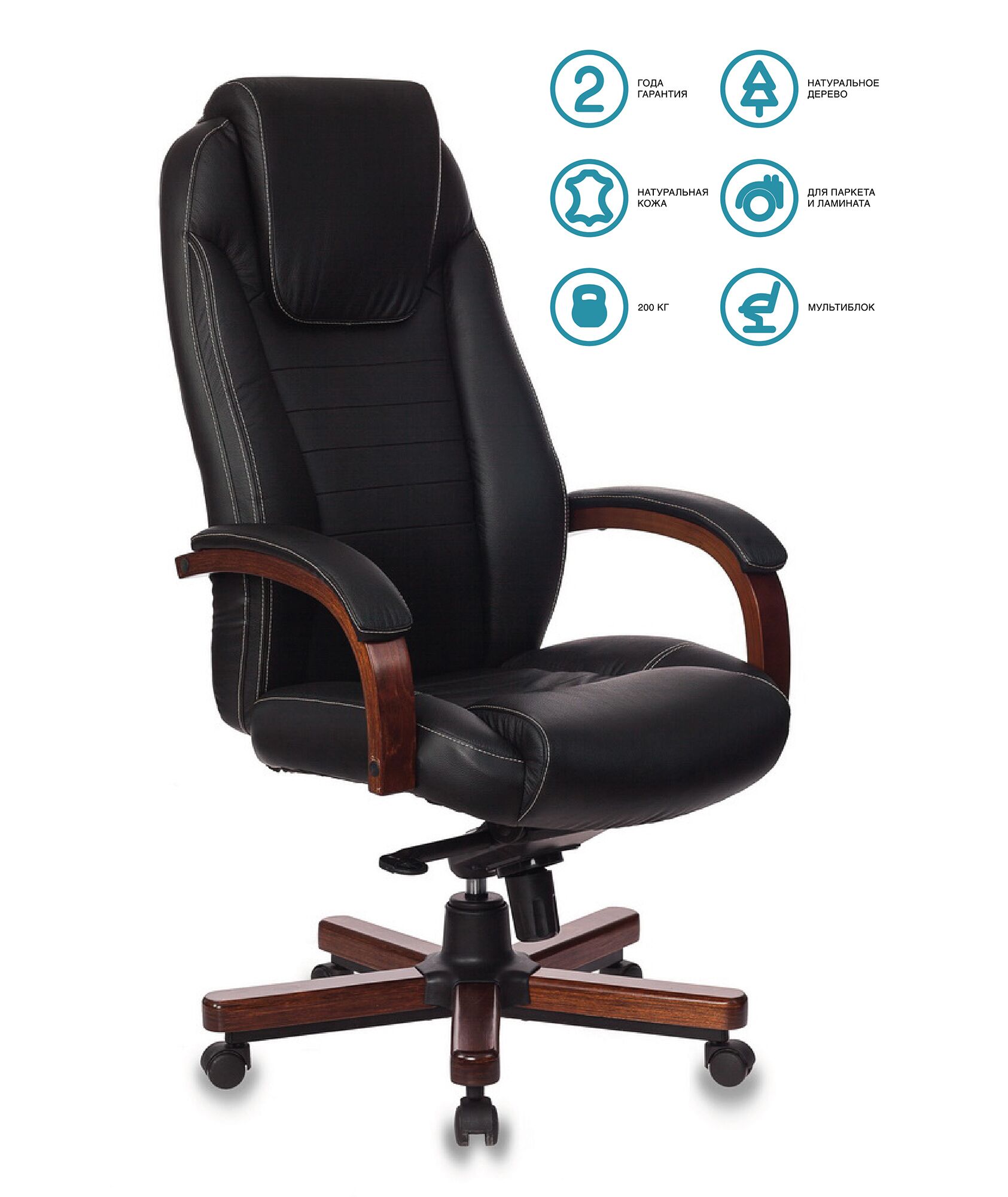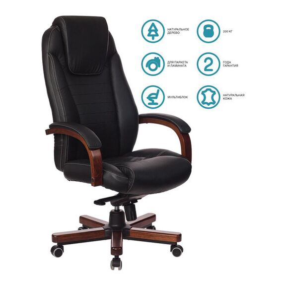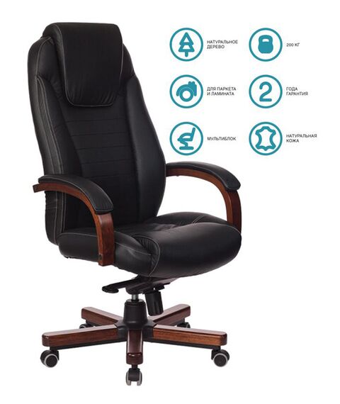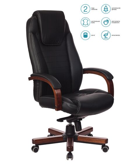 Кресло руководителя Бюрократ T-9923WALNUT/BLACK черный кожа крестов. металл/дерево