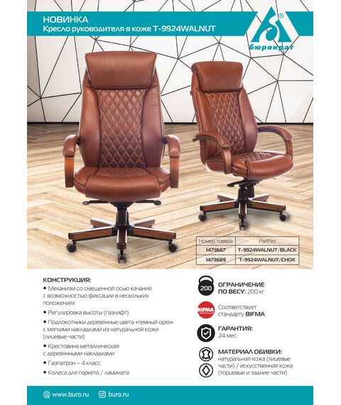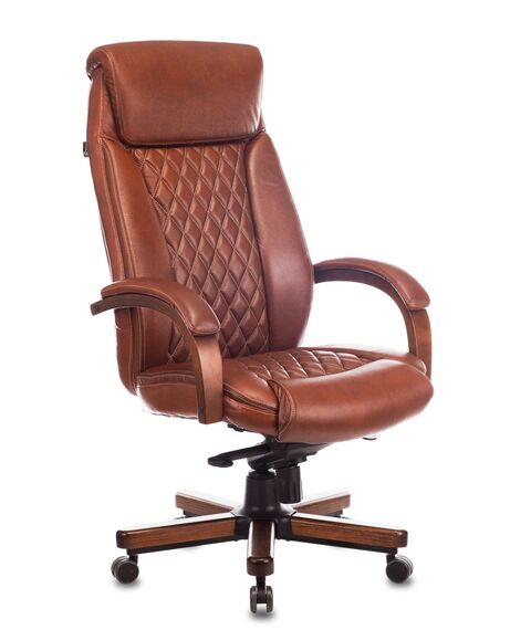 Кресло руководителя Бюрократ T-9924WALNUT/CHOK светло-коричневый Leather Eichel кожа крестов. металл/дерево