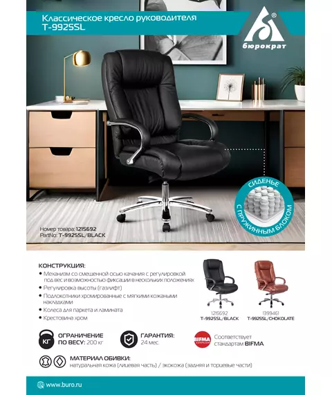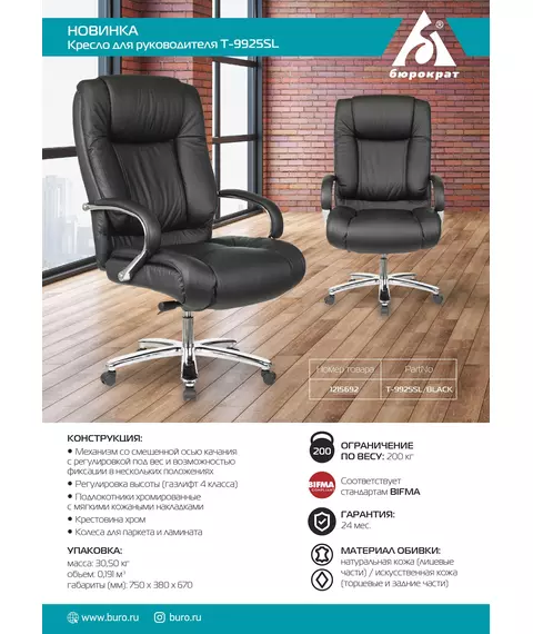 Кресло руководителя Бюрократ T-9925SL/BLACK черный кожа крестов. металл хром