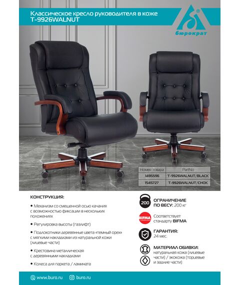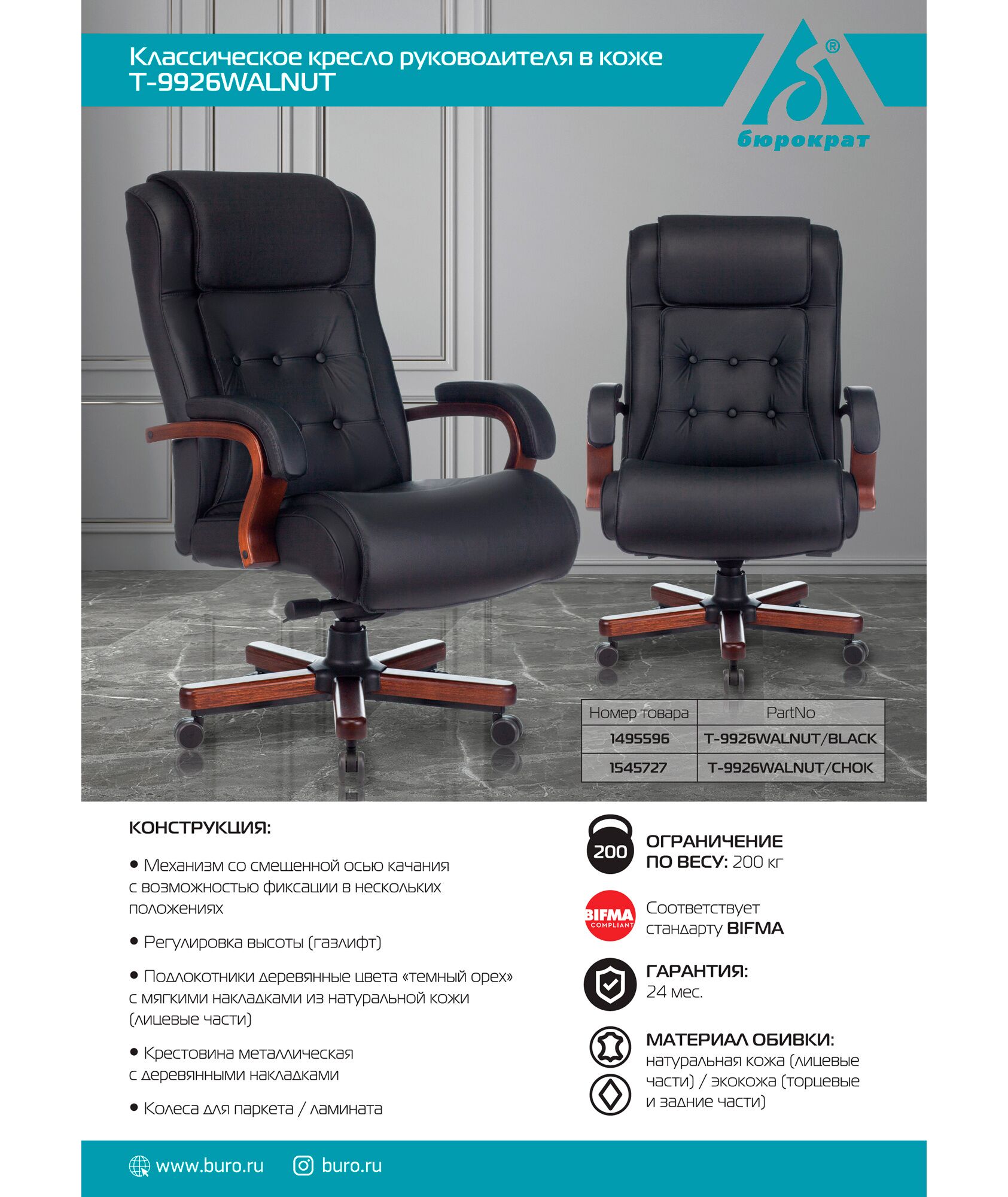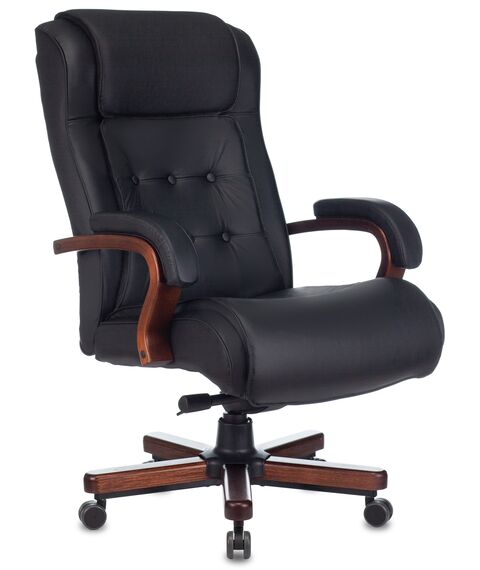 Кресло руководителя Бюрократ T-9926WALNUT/BLACK черный кожа крестов. металл/дерево