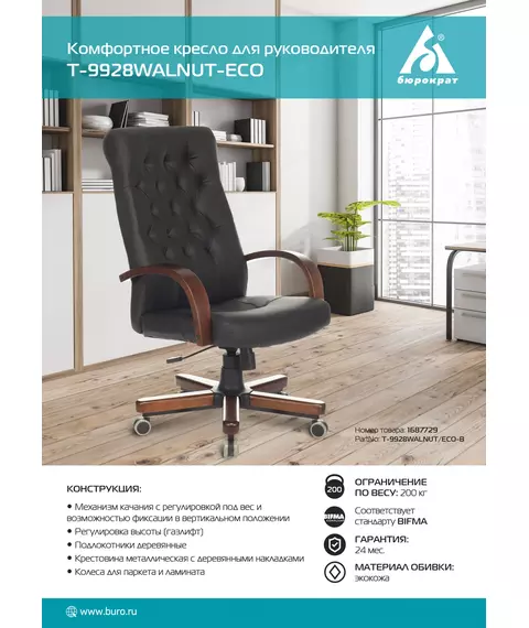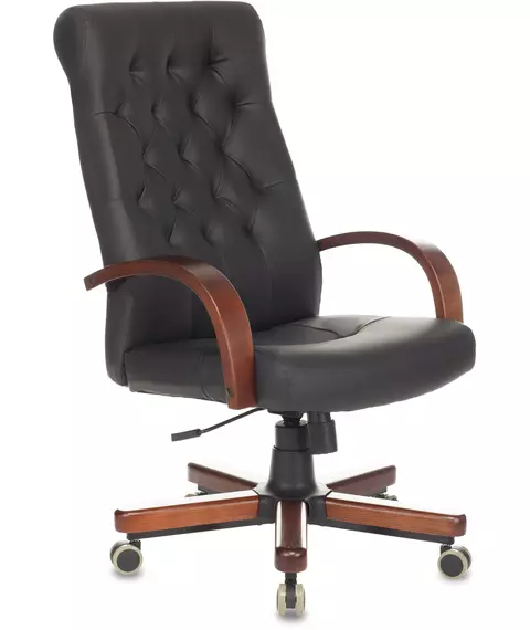 Кресло руководителя Бюрократ T-9928WALNUT/ECO-B черный эко.кожа крестов. металл/дерево