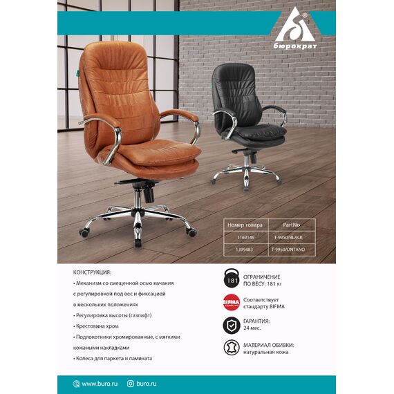 Кресло руководителя Бюрократ T-9950/BLACK черный кожа крестов металл хром