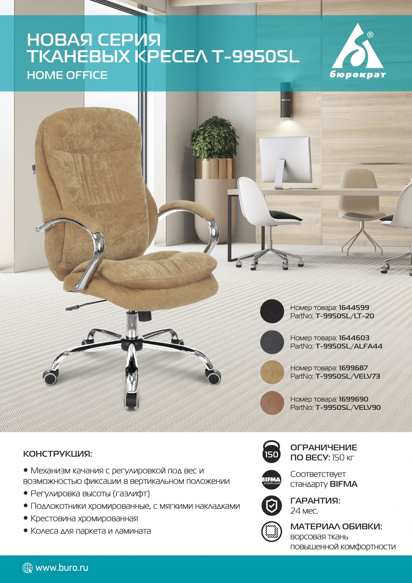 Кресло руководителя Бюрократ T-9950SL/VELV90 Fabric светло-коричневый Velvet 90 крестов. металл хром